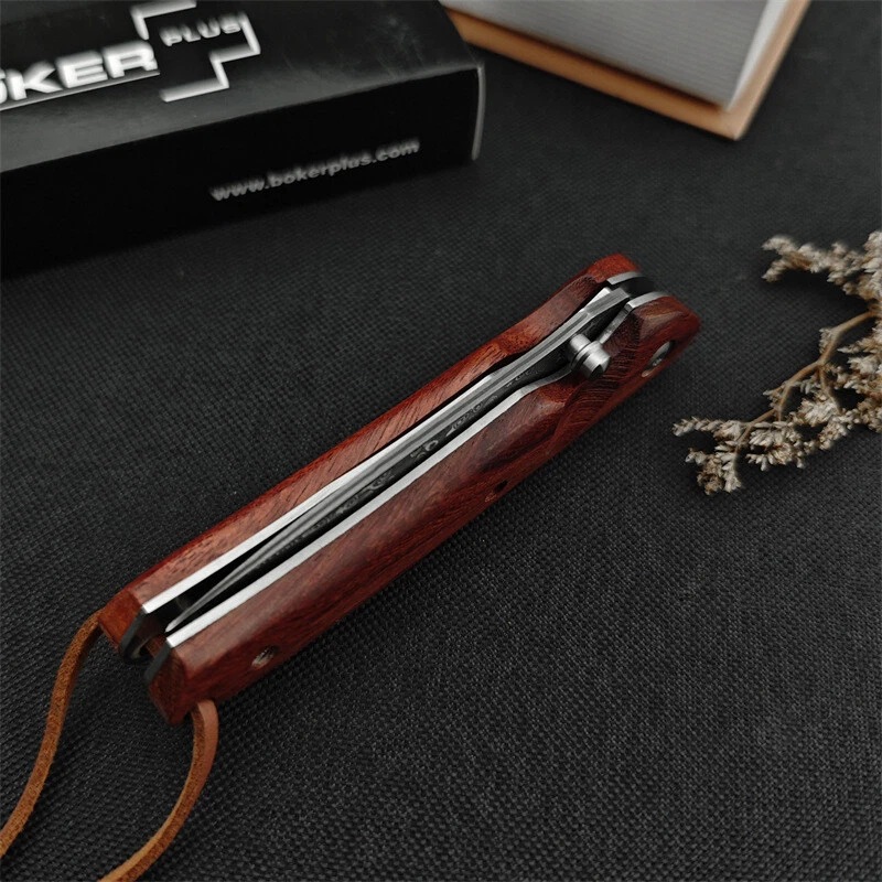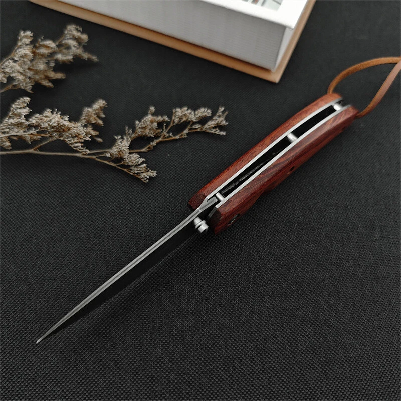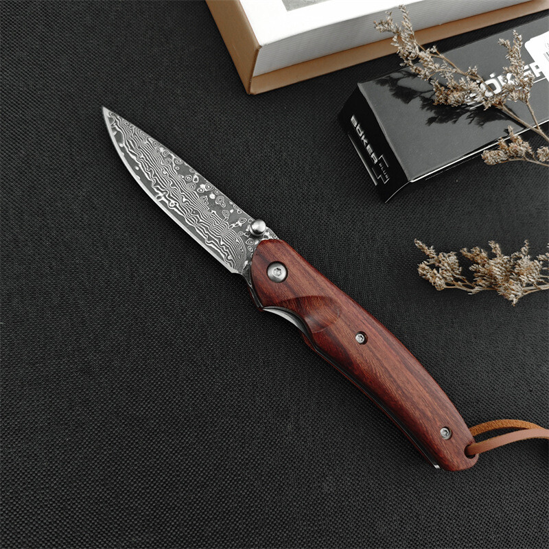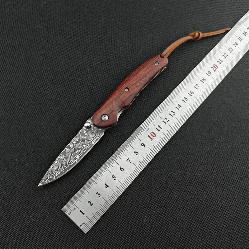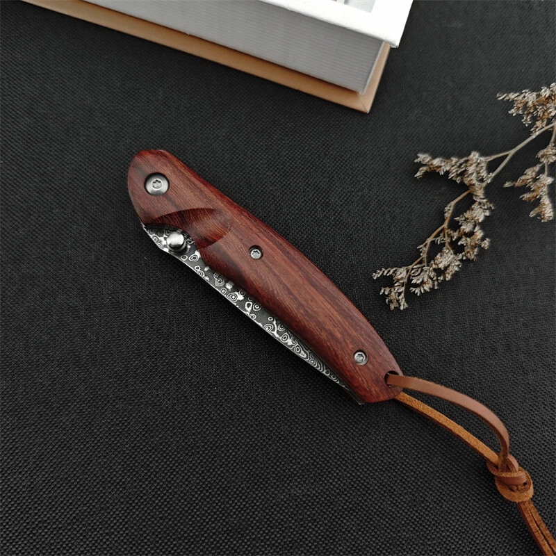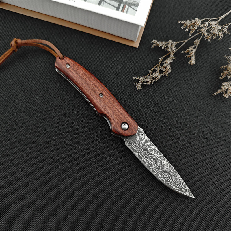 This Damascus steel folding knife is a must-have for outdoor adventures! The compact size makes it super portable, yet the razor-sharp blade handles tough tasks effortlessly. The beautiful steel pattern gives it a premium look, and the smooth folding mechanism feels sturdy and secure. Perfect for camping, hiking, or everyday carry—great quality at an amazing price!
