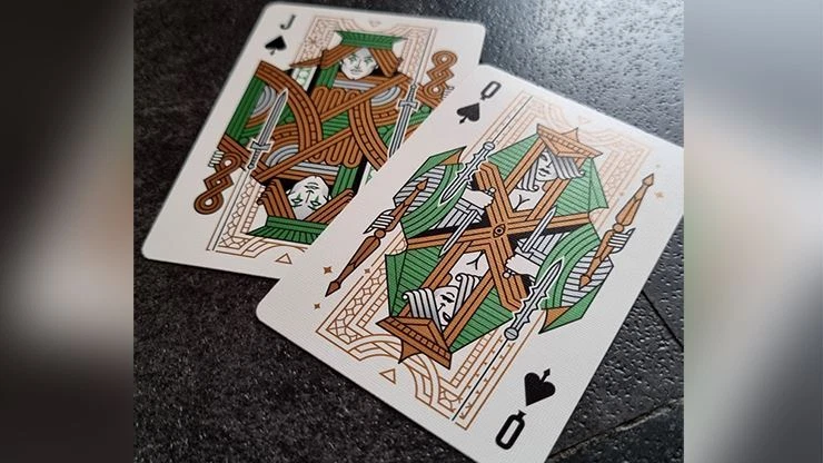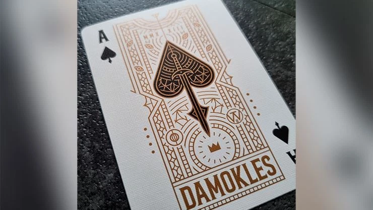 Please note: We only sell genuine playing cards from bonafide manufacturers. "Uneasy lies the head that wears a crown." Damokles is a series by Thirdway Industries about the imminent and ever-present peril faced by all human beings, inspired by the popular Greek myth of Damocles. Fully custom but with recognizable courts, perfect to play with. 2 Metallic inks on box and card backs (copper and silver) 3 Metallic inks on card faces (copper, silver, green) Around 2500 units made Printed by USPCC with Bicycle stock 4 Intricate Jokers inspired by the Four Horsemen ____________________________________________________________________________________________ Are you ready to elevate your poker game with original playing cards? Visit our store today to browse our selection of authentic decks and start playing like a pro. Remember, when it comes to poker and other card games, we only sell original cards from genuine sources. Experience the difference for yourself and take your gameplay to new heights with premium quality playing cards.