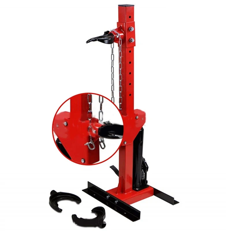 Damping Disassembly Machine Shock-Absorbing Spring Compressor Hydraulic Tools Item Description Nam e: shock absorbing spring dismantling machine Packing weight: 37KG Package size: 116*36*27CM Load capacity: 3T (6600 lb) Cylinder piston stroke: 320mm (12.6") Piston Diameter: 28mm (1.1") Minimum support rod shaft open: 65*51mm (2.6"*2") The maximum. Support rod shaft opening: 60*300mm (2.4"*11.8") Lifting height of jack: 495~820mm (19.5"*32.3") Height adjustment: It can be adjusted through 7 holes on the column Gross weight: 32 kg (70.5 lb)