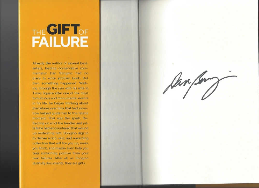 Dan Bongino *AUTOGRAPHED/SIGNED* The Gift of Failure Hard Cover w/ Dust jacket -BRAND NEW New unread publisher issue signed copy, not an "in person" signed edition. Guaranteed to pass any third party authentications service (PSA, JSA, Beckett, etc). winning bidder pays $4.75 economy shipping. Expedited shipping available upon request for an additional fee,