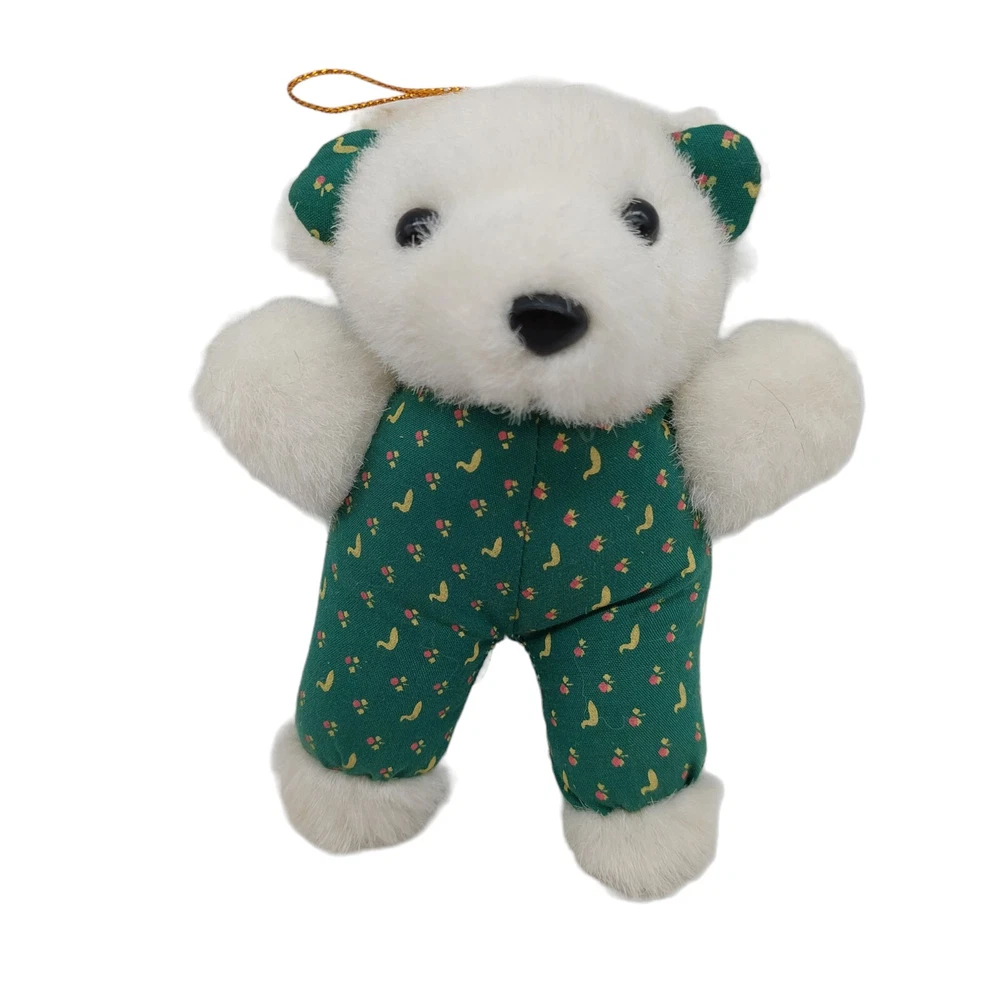 Dan Dee White Teddy Bear Plush Green Outfit Polar Bear Stuffed Animal 5" 1988