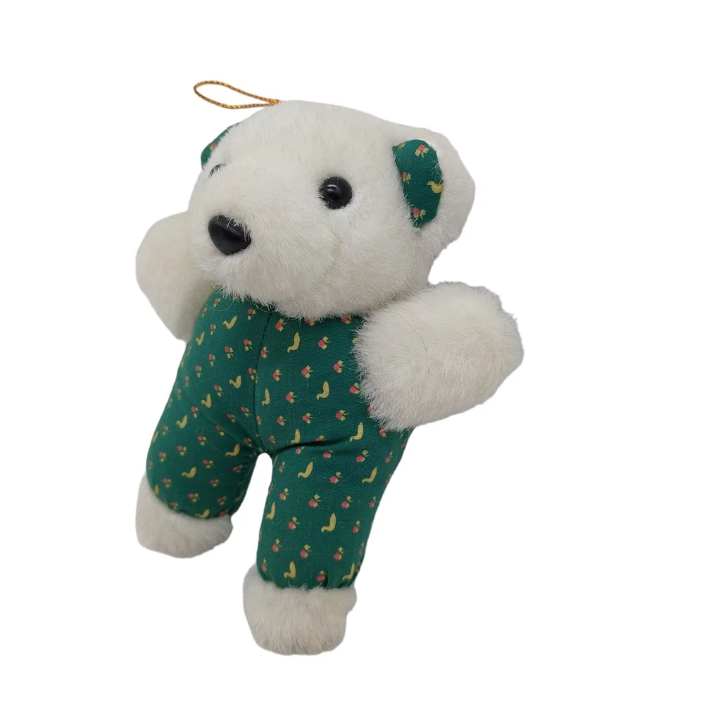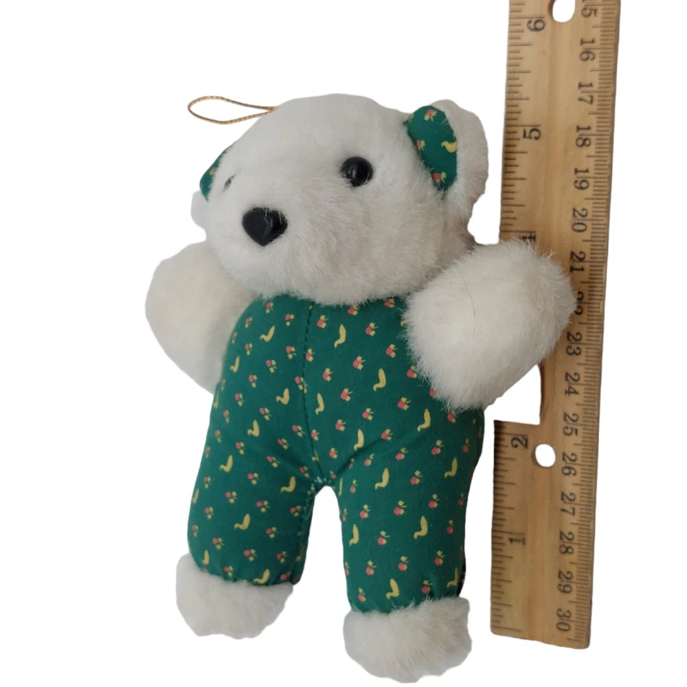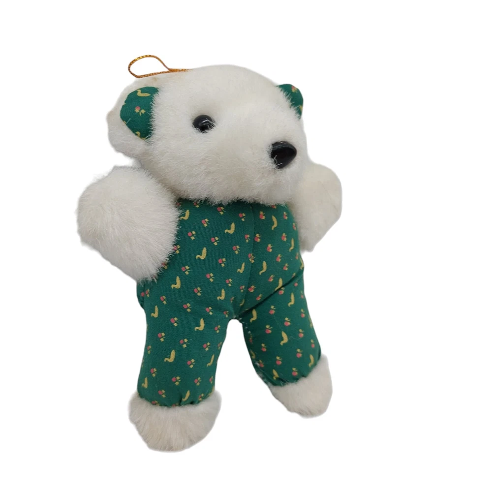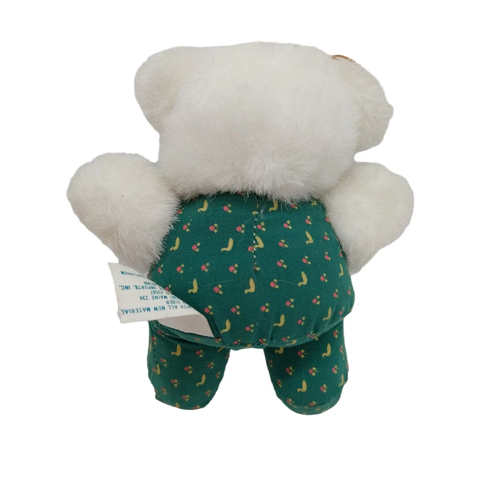 HomeDan Dee White Teddy Bear Plush Green Outfit Polar Bear Stuffed Animal 5" 1988