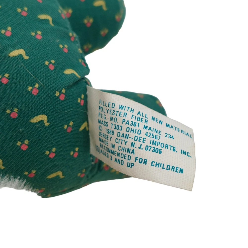 Country/Region of Manufacture:ChinaColor:WhiteType:PlushAnimal:BearBrand:Dan DeeRecommended Age Range:3+ yearsUPC:Does not applyFeatures:Retired, Washable, Green outfit.Size:Small (6-14 in)Age Level:3-4 Yearsgtin13:Does not applyYear:1988Occasion:All Occasions