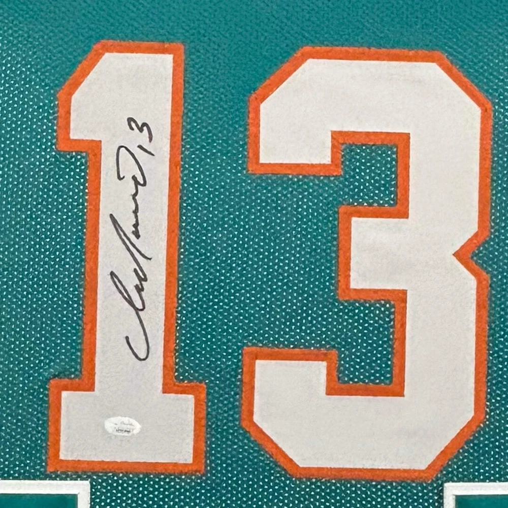 Dan Marino Signed Miami Blue Custom Suede Matte Framed Football Jersey (JSA) Dan Marino professionally framed hand signed, custom stitched football jersey with premium suede matte, wood frame and plexiglass cover. 34x42 inch wood frame Premium suede matte with shatter proof acrylic Letters and numbers are stitched on jerseys. There are no league logos or branding Top 3rd party authentication with money-back guarantee. Rep your team with an autographed and framed jersey! RSA offers top deals on high quality, framed sports jerseys. Whether you are a lifelong fan or looking for the perfect gift, you will love the way this piece pops on a fan cave wall. Dan Marino Signed Miami Blue Custom Suede Matte Framed Football Jersey (JSA) Dan Marino professionally framed hand signed, custom stitched football jersey with premium suede matte, wood frame and plexiglass cover. 34x42 inch wood frame Premium suede matte with shatter proof acrylic Letters and numbers are stitched on jerseys. There are no league logos or branding Top 3rd party authentication with money-back guarantee. Rep your team with an autographed and framed jersey! RSA offers top deals on high quality, framed sports jerseys. Whether you are a lifelong fan or looking for the perfect gift, you will love the way this piece pops on a fan cave wall. × × × × × × × Buy now and save! Shipping info Click the Shipping & Payments tab above the listing description for more info Price: $39.99 (local shipping) Click the Shipping & Payments tab above the listing description for more info! Additional delivery notes PICK UP OPTION Sorry, our items are NOT available for pick-up. PAYMENT Immediate payment is required upon selecting "Buy It Now" or upon checking out through the cart. We accept payment via U.S. PayPal accounts and all Major Credit Cards, Debit Cards & Google Pay. We are legally required to collect sales tax in those states and localities where we maintain a physical presence (nexus). The applicable amount of sales tax charged to an order will be calculated based on the shipment destination's state and local sales tax laws. Thank you for shopping with us on eBay! Additional Information No additional information at this time Ask seller a question You might also like Odell Beckham Jr Autographed Pro Style Custom Football Jersey Orange JSA Denzel Mims Signed Pro-Edition Black Football Jersey (JSA) Denzel Mims Signed Pro-Edition Gray Football Jersey (JSA) Denzel Mims Signed Pro-Edition White Football Jersey (JSA) Contact To contact our Customer Service Team, simply click the button here and our Customer Service team will be happy to assist. Ask seller a question © RSA Shipping & Payments Shipping is a flat rate across US at a rate of $39.99 Payment Accepted Payment Methods Immediate payment is required upon selecting "Buy It Now" or upon checking out through the cart. We accept payment via U.S. PayPal accounts and all Major Credit Cards, Debit Cards & Google Pay. We are legally required to collect sales tax in those states and localities where we maintain a physical presence (nexus). The applicable amount of sales tax charged to an order will be calculated based on the shipment destination's state and local sales tax laws. Thank you for shopping with us on eBay! Returns Returns are accepted Items must be returned within 30 days of the auction ending Buyer will pay for return shipping. eBay integration by
