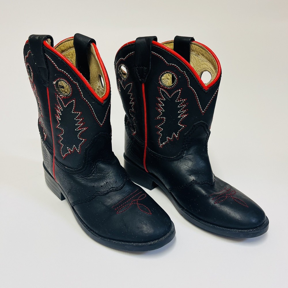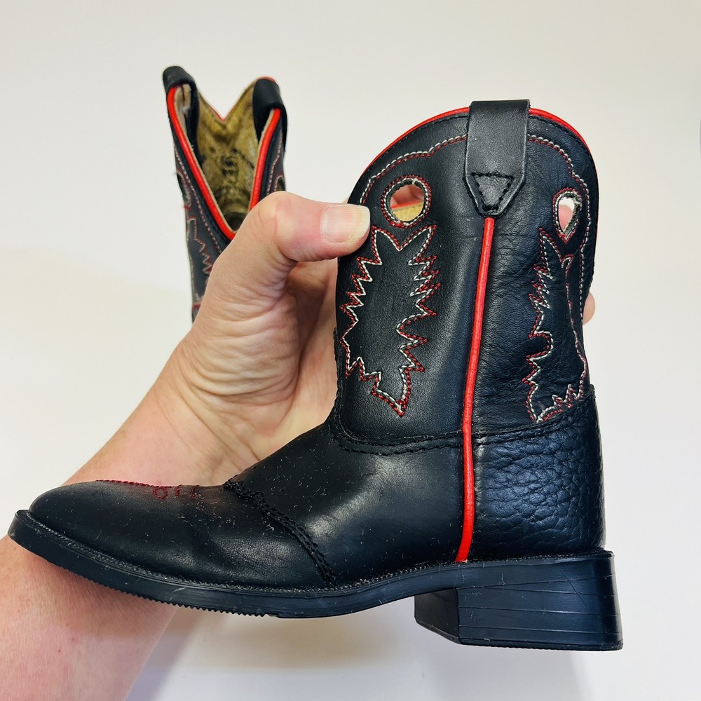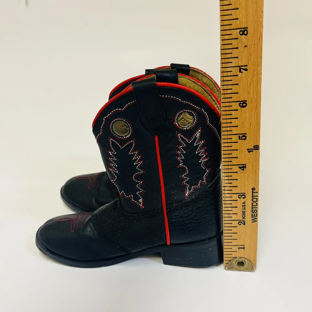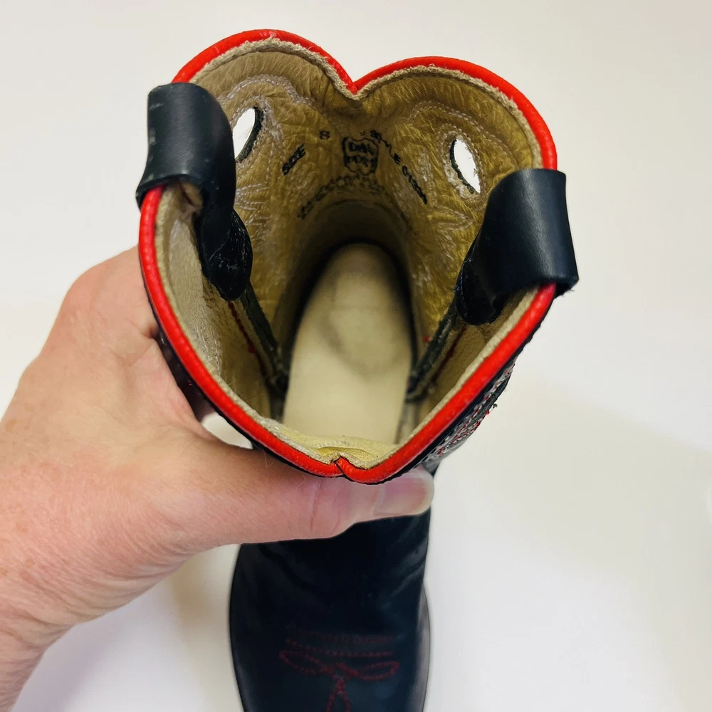 Dan Post Kids Youth Roper Western Cowboy Leather Boots Black w/ Red Detail and Embroidery Children’s Size 8 Worn Once Inside! All the Good Details in a Pint Size! Color: Black with Red Size: Child's 8 Material: Leather Upper Manmade Sole- See picture for Full Fabric content Condition: Good, No visible Stains or Flaws * Product color may vary slightly due to photographic lighting or your monitor settings. THANK YOU FOR YOUR INTEREST! WE SHIP WITHIN 2 DAYS OF PURCHASE ALL RELEVANT PHOTOS ARE IN THE LISTING WILL NOT RESPOND TO MESSAGES FOR ADDITTIONAL PHOTOS OUTSIDEOF THIS APP!!! PLEASE DO REACH OUT IF THERE IS SOME SPECIFIC DETAIL YOU ARELOOKING FOR AND WE WILL UPDATE THE LISTING WITH AN ADDITIONAL PHOTO IF POSSIBLE