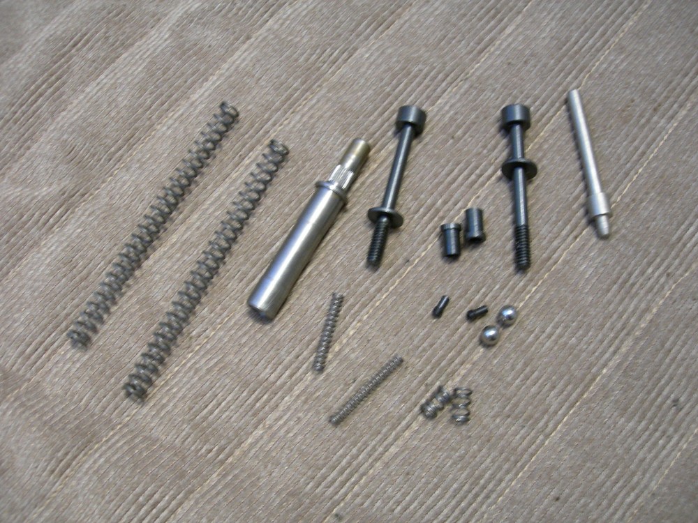 SOME DAN WESSON MODEL 15-2 SMALL PARTS. I BELIEVE THESE ARE NEW EXCEPT THE HAMMER WHICH IS CLEARLY MARKED USED.
