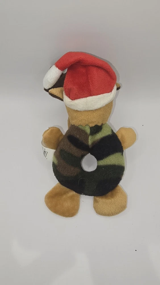 This is DanDee collectors' choice. Reindeer with Santa hat on Camo Ring Pet Chew Toy is perfect for your furry friend's entertainment. Made of plush material, this ring toy is durable and can withstand even the most aggressive chewers. Its design features a reindeer camo pattern that is sure to capture your dog's attention. Ideal for small dogs, this ring toy is a great addition to your pet's toy collection. Its unique design and high-quality materials make it a must-have for any pet owner. Get your hands on this amazing toy today and watch your dog's tail wag with delight!