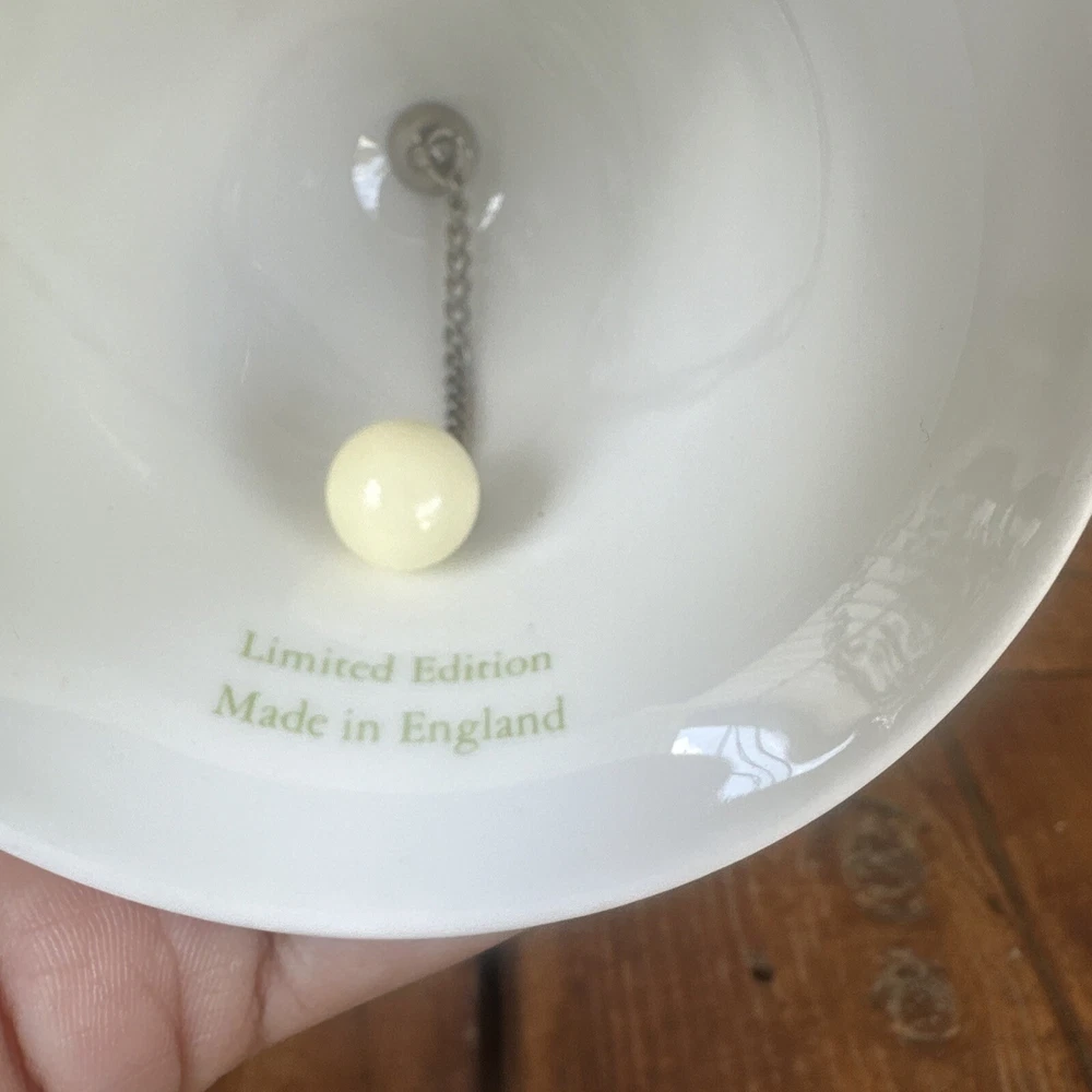 This beautiful Danbury Mint bell features the Josephine Bruce Rose pattern, with delicate pink, white, and gold colors. It is perfect for collectors of all occasions, and its American style adds a touch of elegance to any decor. Made of high-quality porcelain and crafted in the United Kingdom, this bell is a must-have for any decorative collectibles enthusiast. This is in original box does not have paper with it.