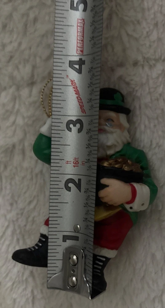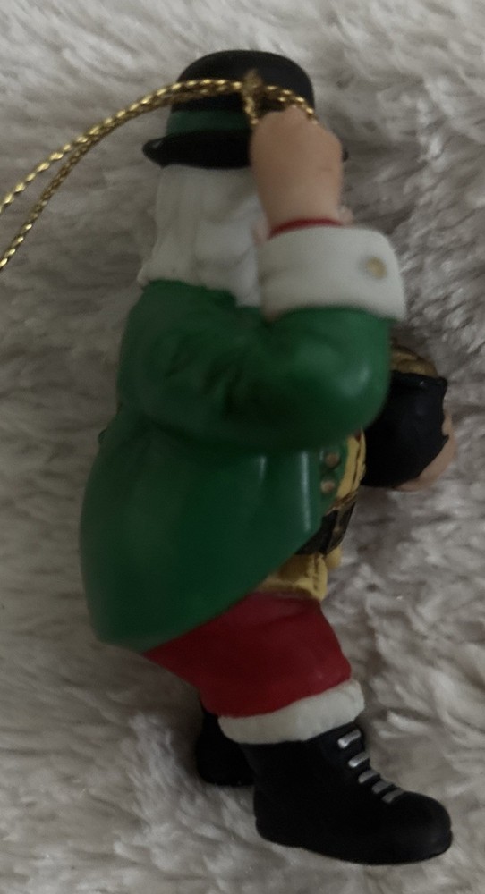 The Danbury Mint Around the World Irish Santa Christmas Ornament is a beautifully crafted collectible featuring Santa Claus in a multicolor design. Originating from Taiwan, this hanging ornament is perfect for adding a touch of Christmas cheer to any holiday decor. The ornament includes intricate details and is part of the Danbury Mint product line, making it a special addition to any ornament collection. Ideal for anyone, this unique Santa-themed ornament is sure to bring joy and festive spirit to the holiday season. No box