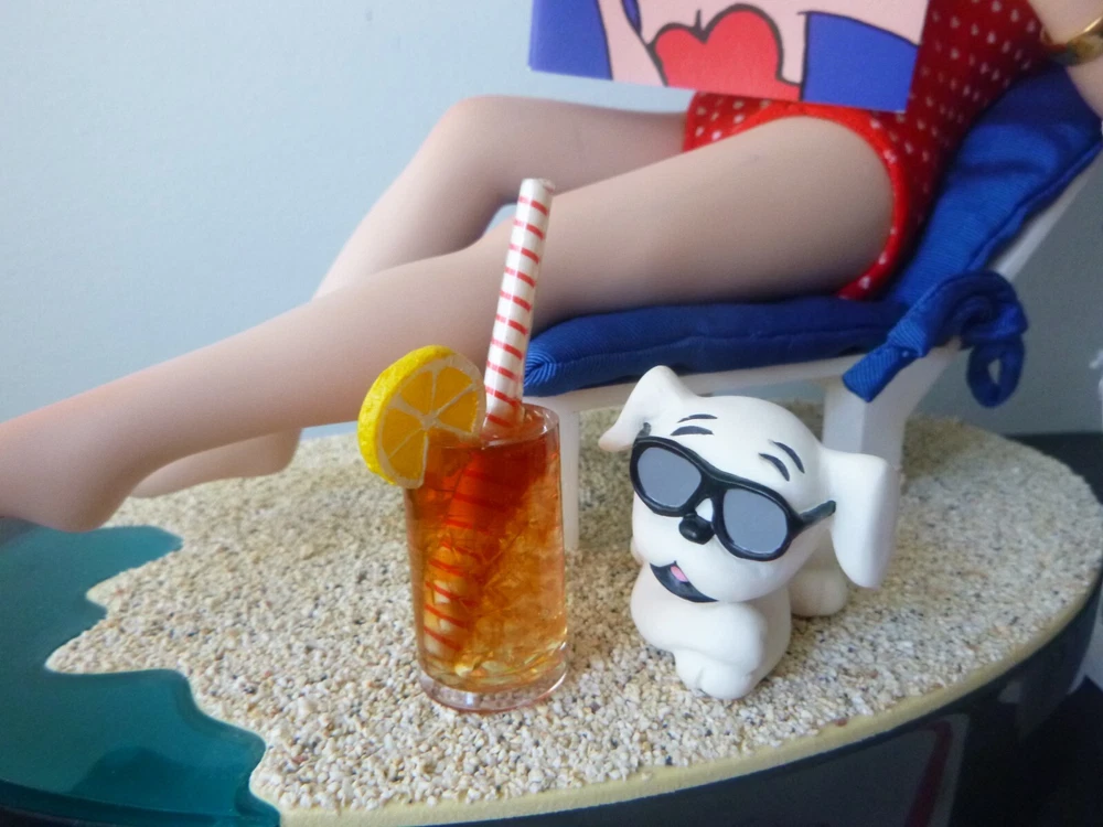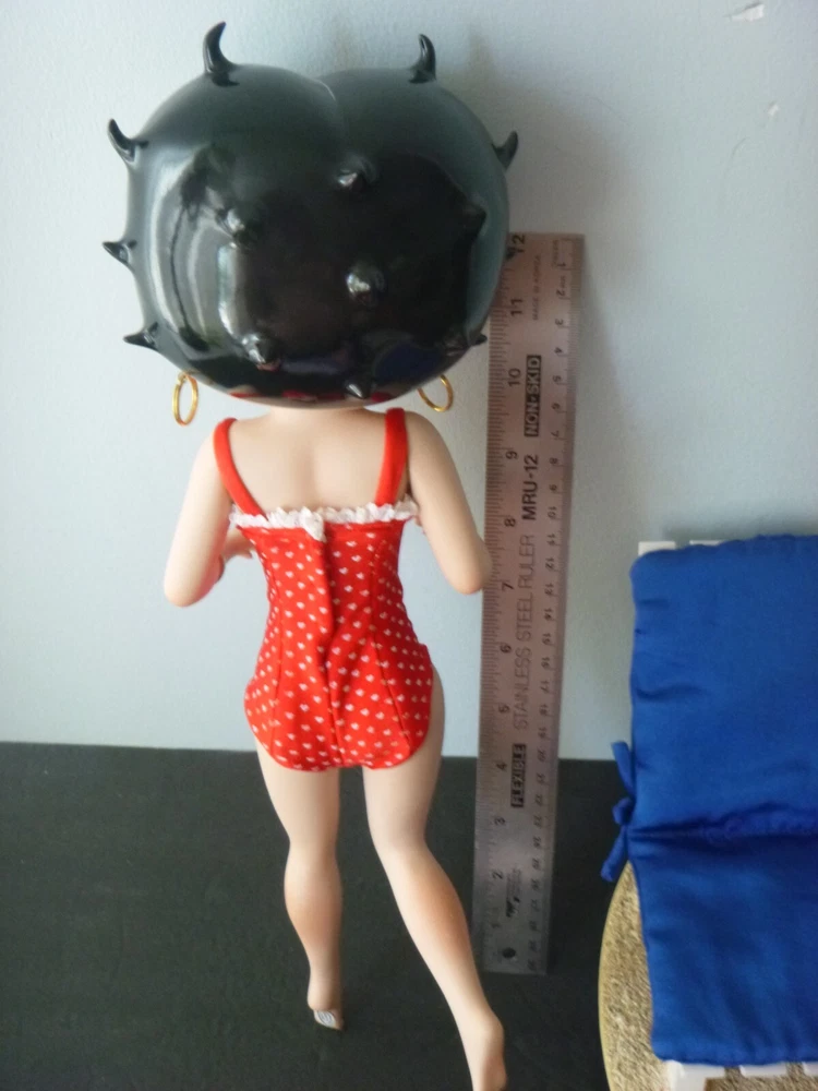 Wonderful Betty Boop large 14" doll all set up for the beach. Excellent condition. The only item worth mentioning is a fold crease at the top of Boop magazine. Comes with all accessories. Chair, chair pad, frosty drink, and Pudgy with sunglasses. (Chair is attached to the beach scene.) She has her hang tag, COA and paper describing how to set up the doll scene. Comes in an oversized original box so sorry about ship costs. Local pick-up is free near Quakertown, PA. Non-smoking home.