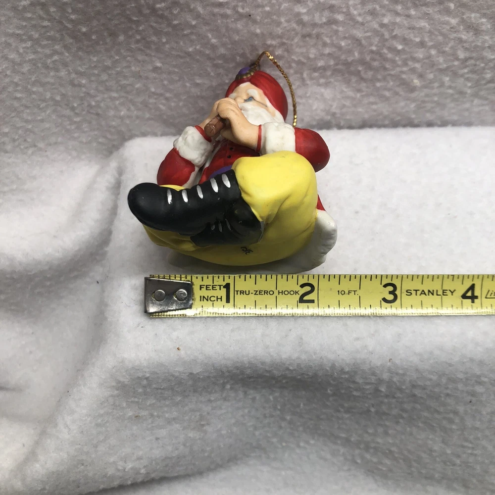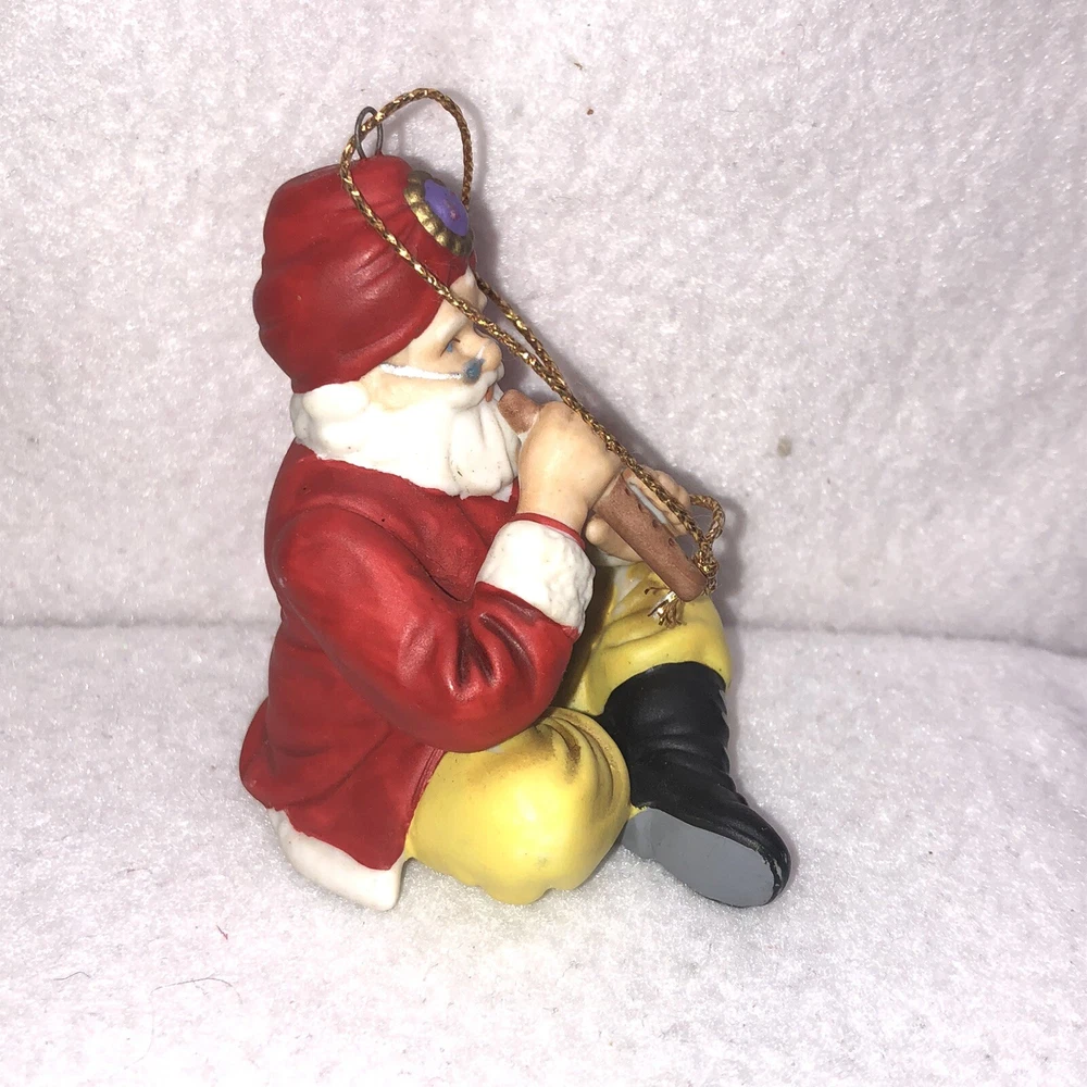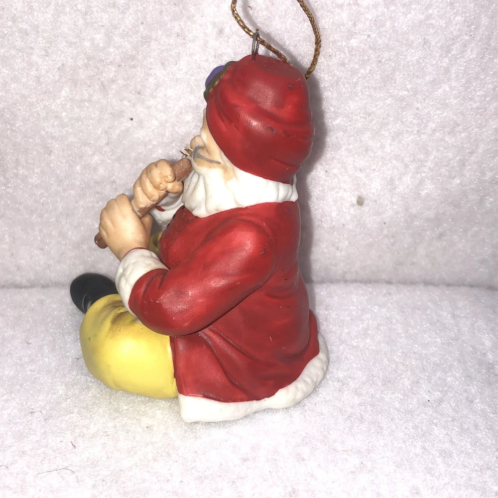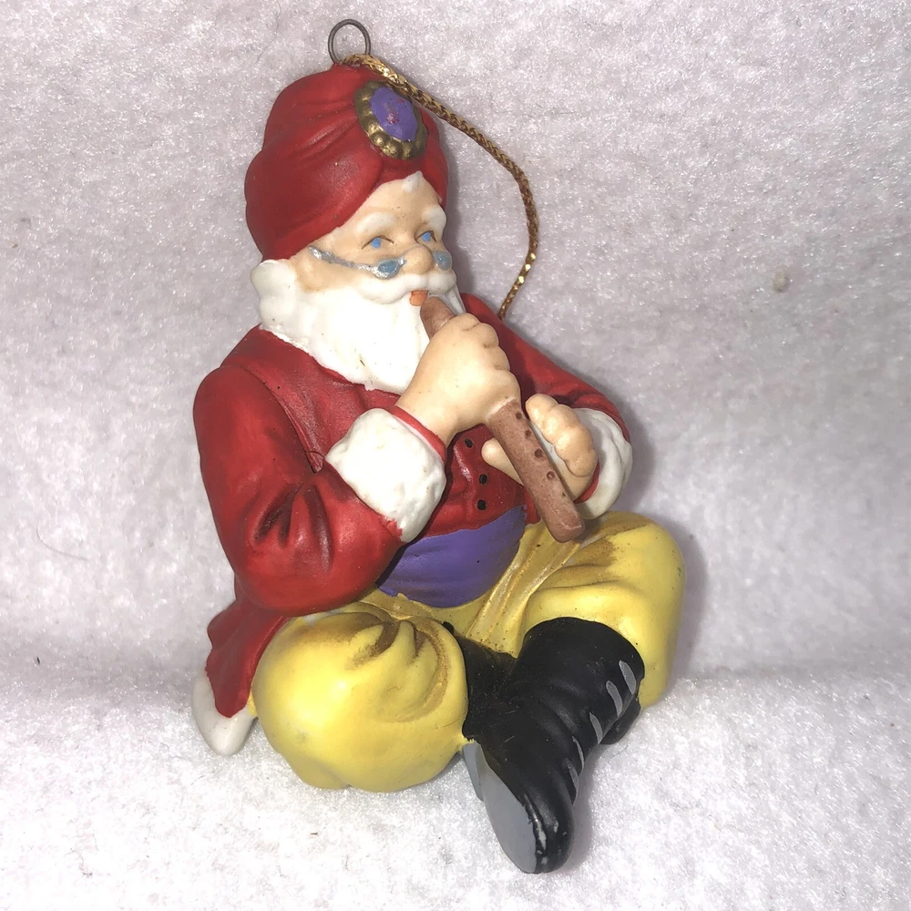 This is a fun Santa from the Danbury Mint's Santa Around the World series. Produced in the early 2000's, this line is now discontinued. This particular Santa is #19 in the series and it represents India. Santa is dressed in his handsome jewel trimmed turban and appears to be playing the flute. He measures approximately 2 1/2 inches tall, 2 inches long and is about 2 1/2 inches wide. Ornament is in good pre-owned condition. There are no nicks, chips, cracks or repairs. Light surface wear does exist. Original Danbury Mint hallmark sticker can be found on the bottom. He no longer comes with a box. Please review and enlarge all photos for additional details, views and measurements. Shipped via USPS Ground Advantage.