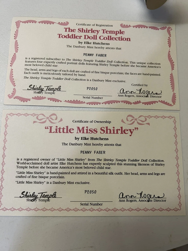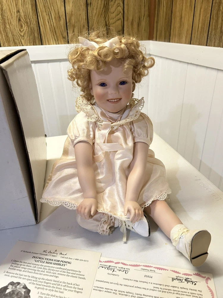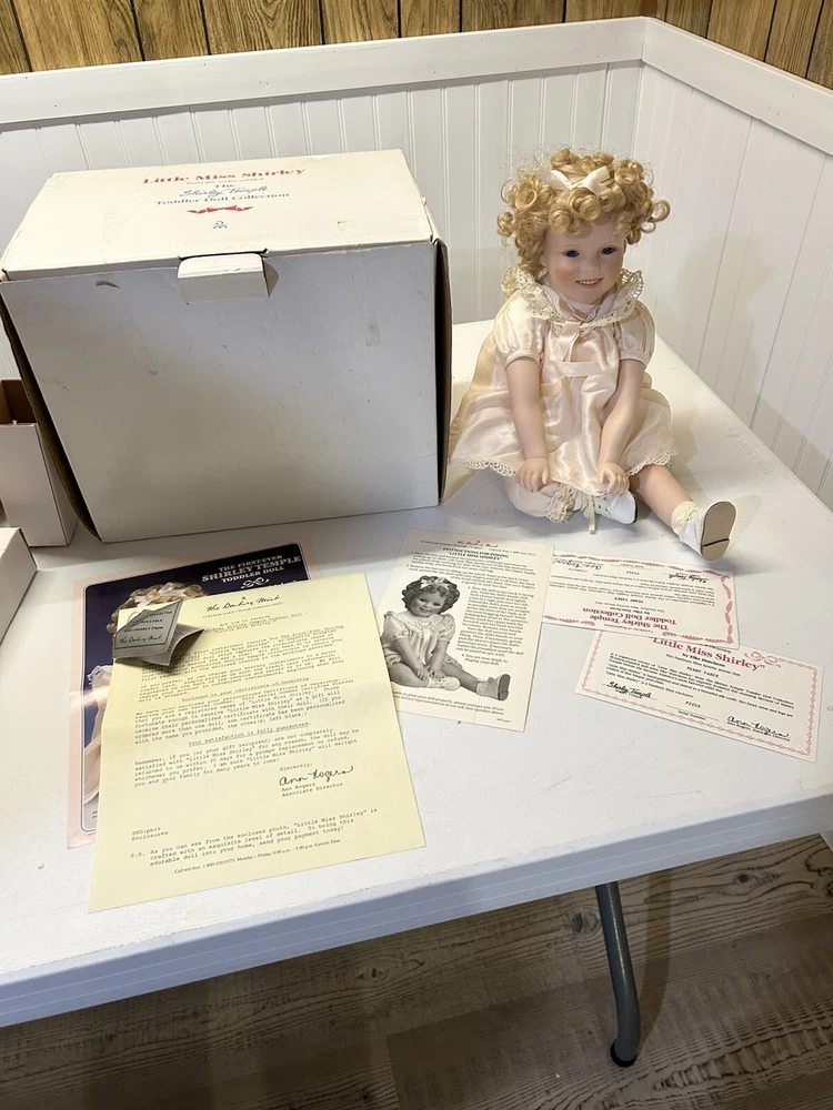 Danbury Mint Little Miss SHIRLEY TEMPLE Doll/RARE Uranium Green Glass Eyes W/Box, NIB with all documentation, from smoke home