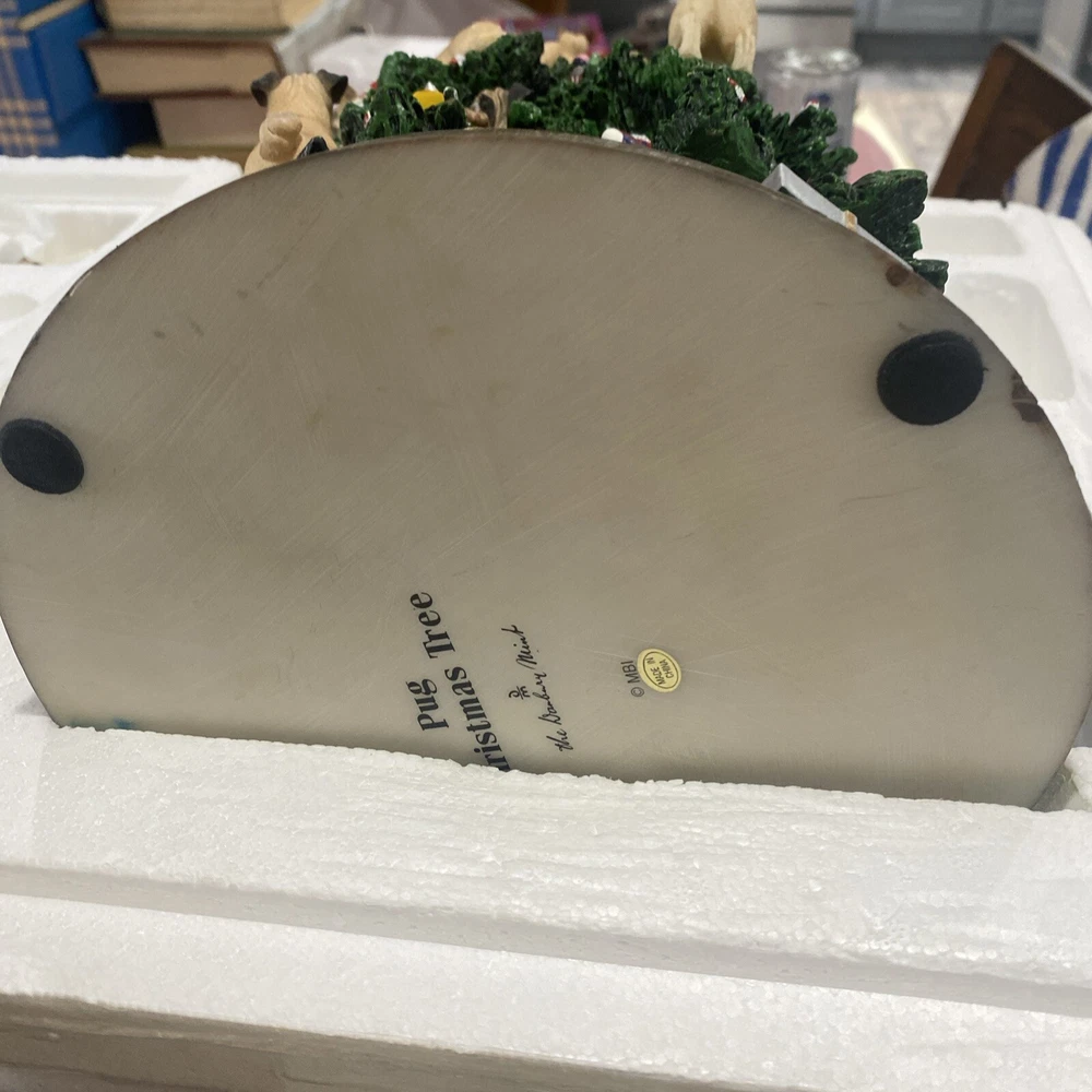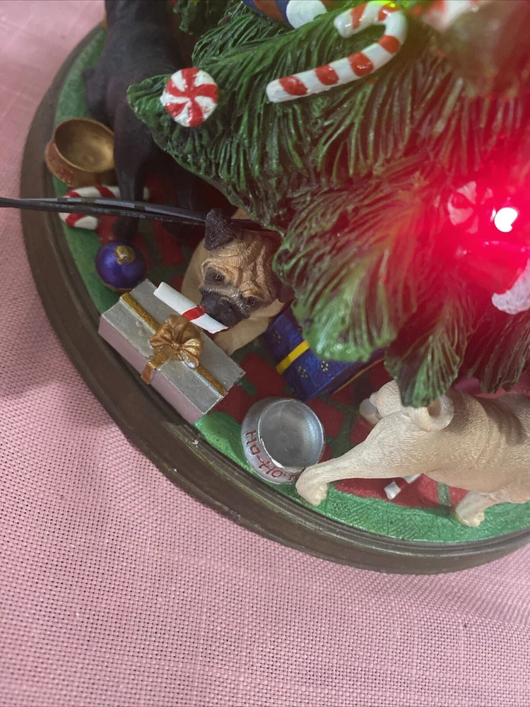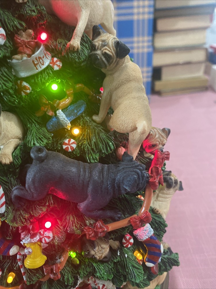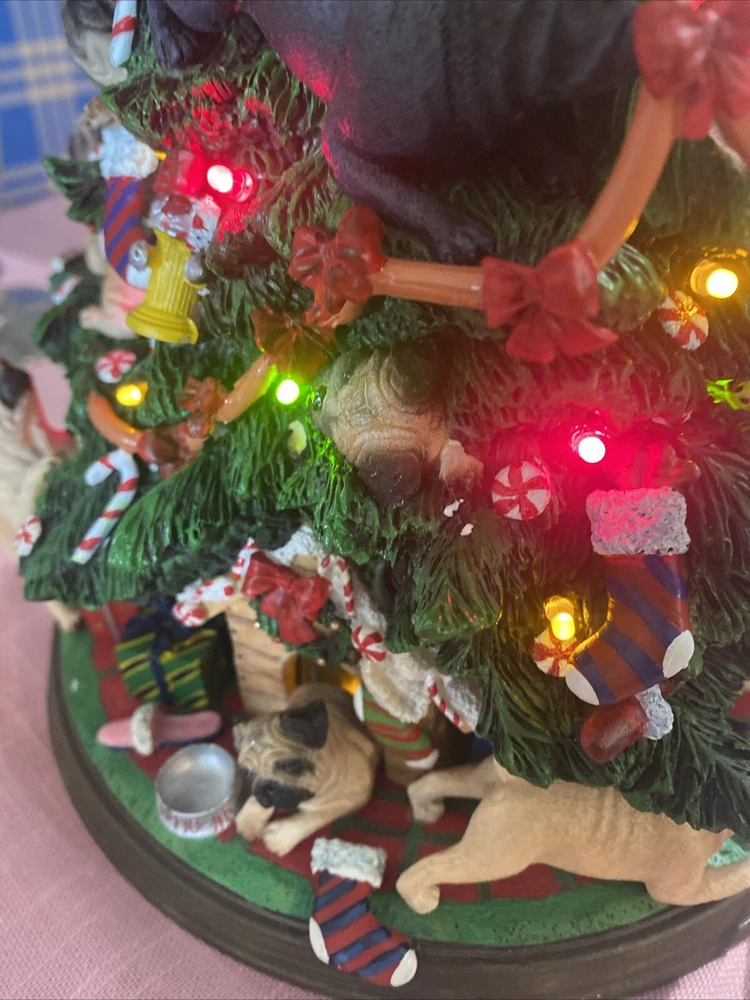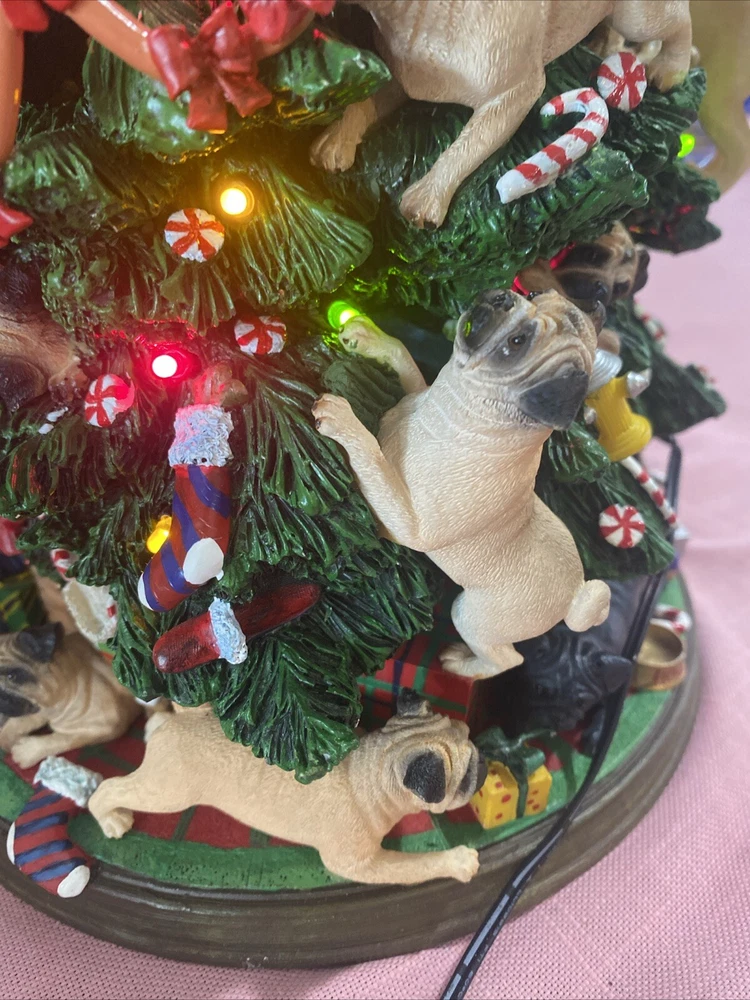Please look at pictures pug is missing on bottom & needs gluing back but not visible and one pug has a slight chip. Please ask questions before purchasing! This Danbury Mint Pug Lighted Christmas Tree is a charming addition to your holiday decor. The mixed materials and multi-color design give it an American style that is both original and delightful. This collectible piece comes in its original box, measuring 12 inches and is perfect for any lover of decorative collectibles. The tree is in excellent working order and has not been modified from its original design. Add this lovely piece to your collection today!