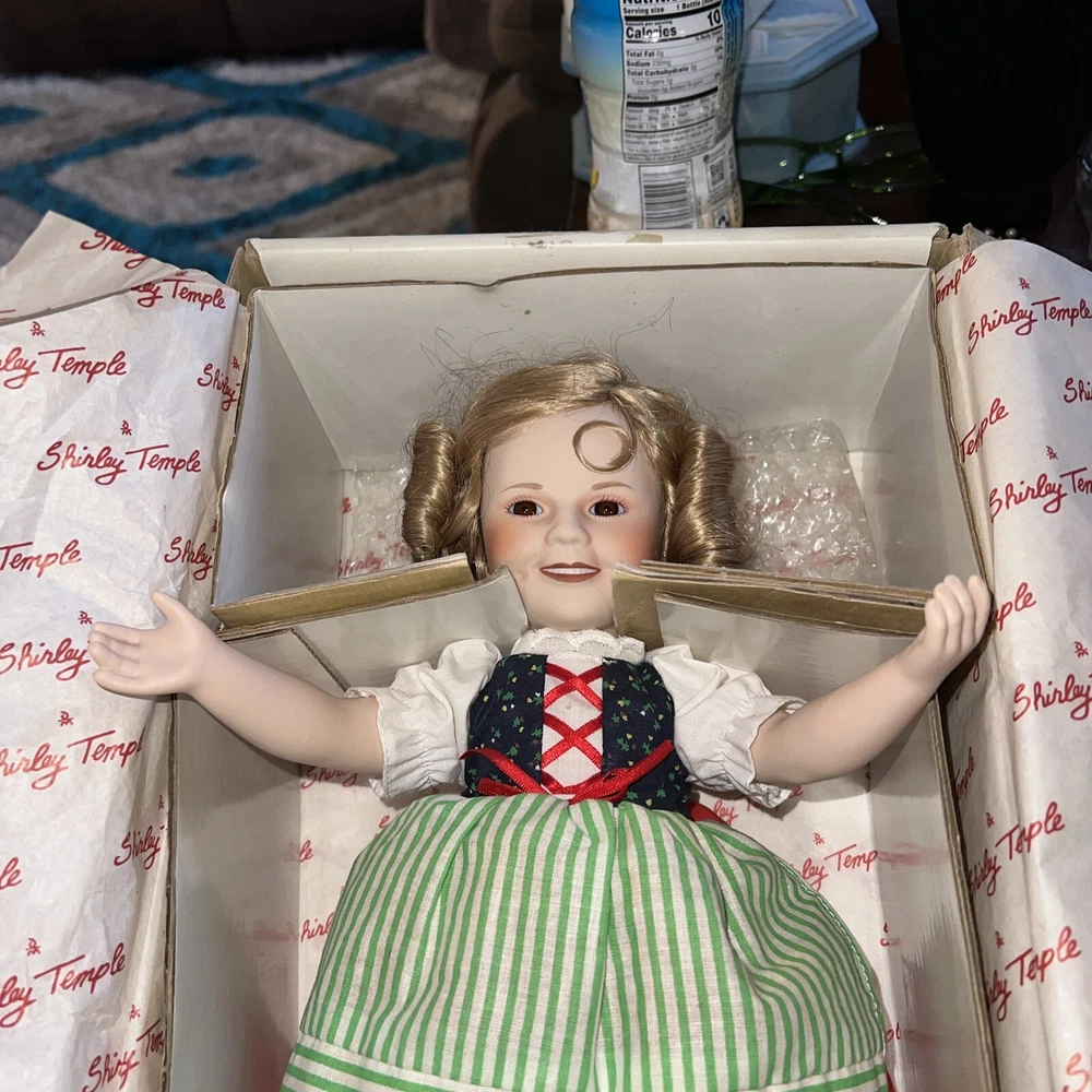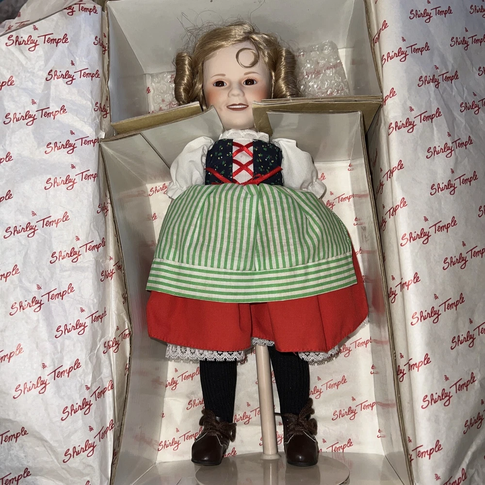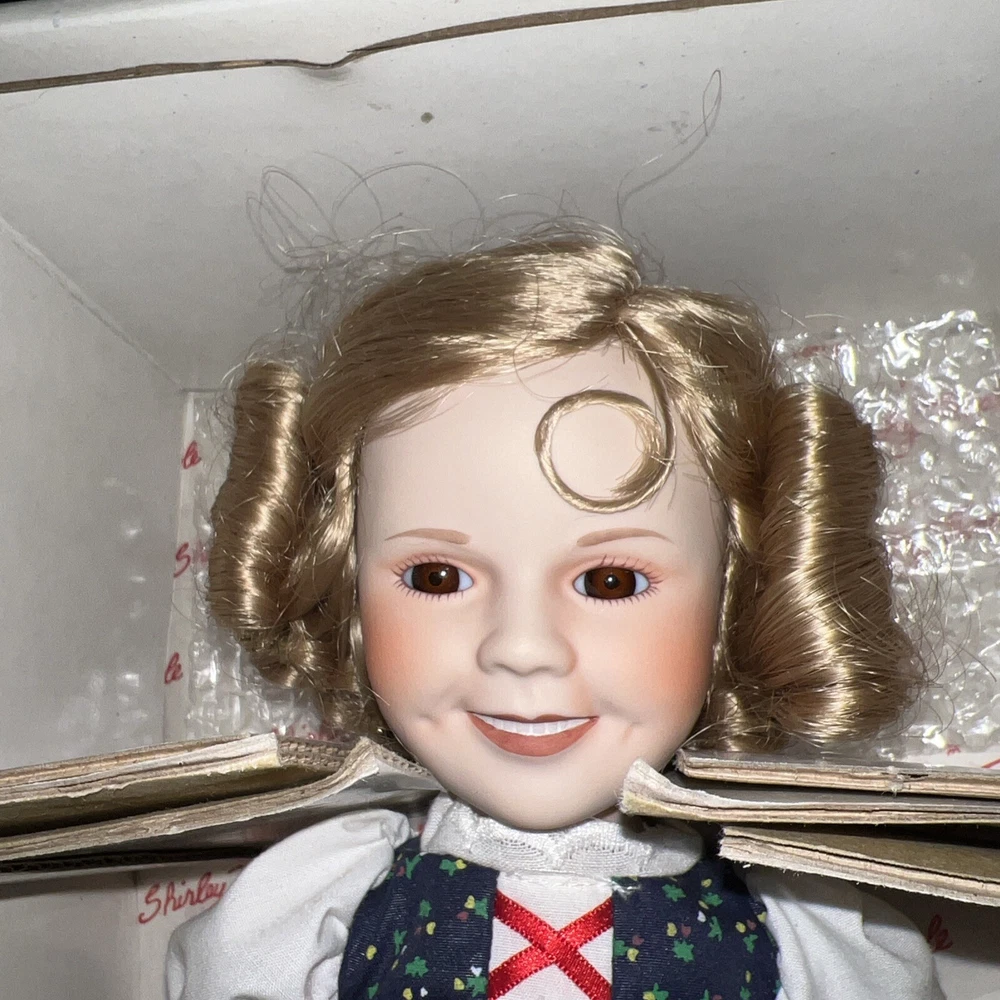 This beautiful Danbury Mint doll is a must-have for any collector or fan of Shirley Temple. With a stunning silver hair color and a 14-inch porcelain material, this girl doll is a true gem. The doll is part of the "Dolls of the Silver Screen" collection and features the beloved character family of Shirley Temple. The set includes the doll itself, and it is a true work of art with intricate details and a stunning design. This doll is perfect for display or play, and it is sure to bring joy to anyone who owns it. Don't miss out on the chance to own this amazing Danbury Mint Shirley Temple doll.