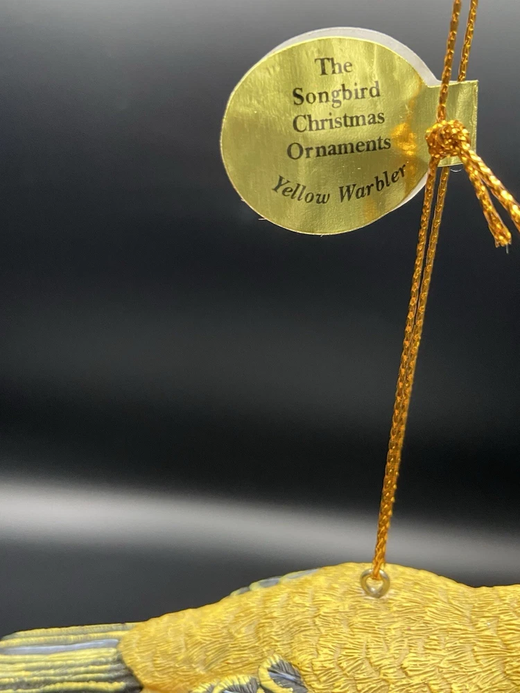 Type: Ornament Original/Licensed Reproduction: Original Vintage: No Brand: Danbury Mint Antique: No Color: Yellow Shape: Bird Subject: Yellow Warbler MPN: N/a Features: Hand Painted, Hanging Collection: Ornaments Theme: Birds Set Includes: Ornament Number of Items: 1 Material: Resin Occasion: Christmas