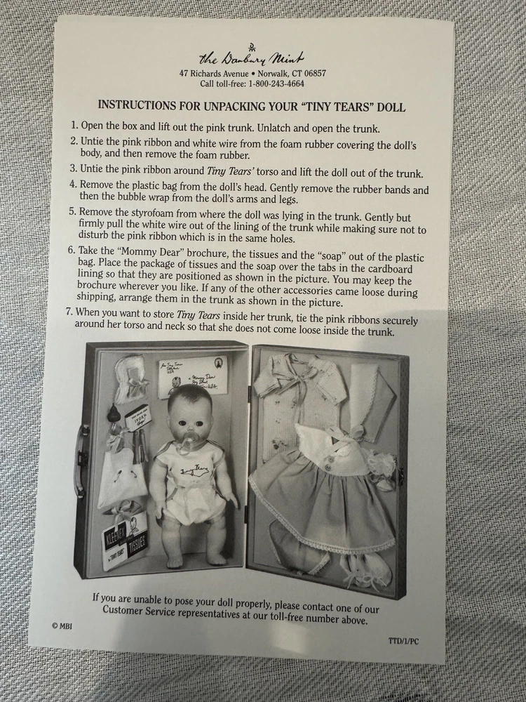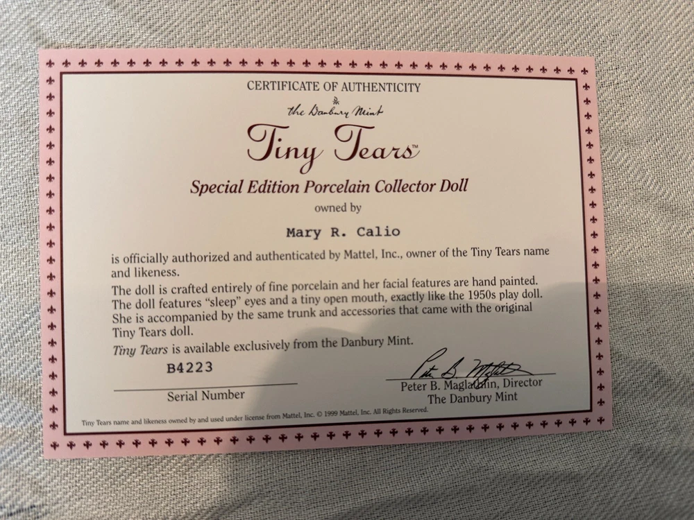 Danbury Mint TINY TEARS Doll Special Ed Porcelain 1999 VTG NIB NRFB ORIGINAL