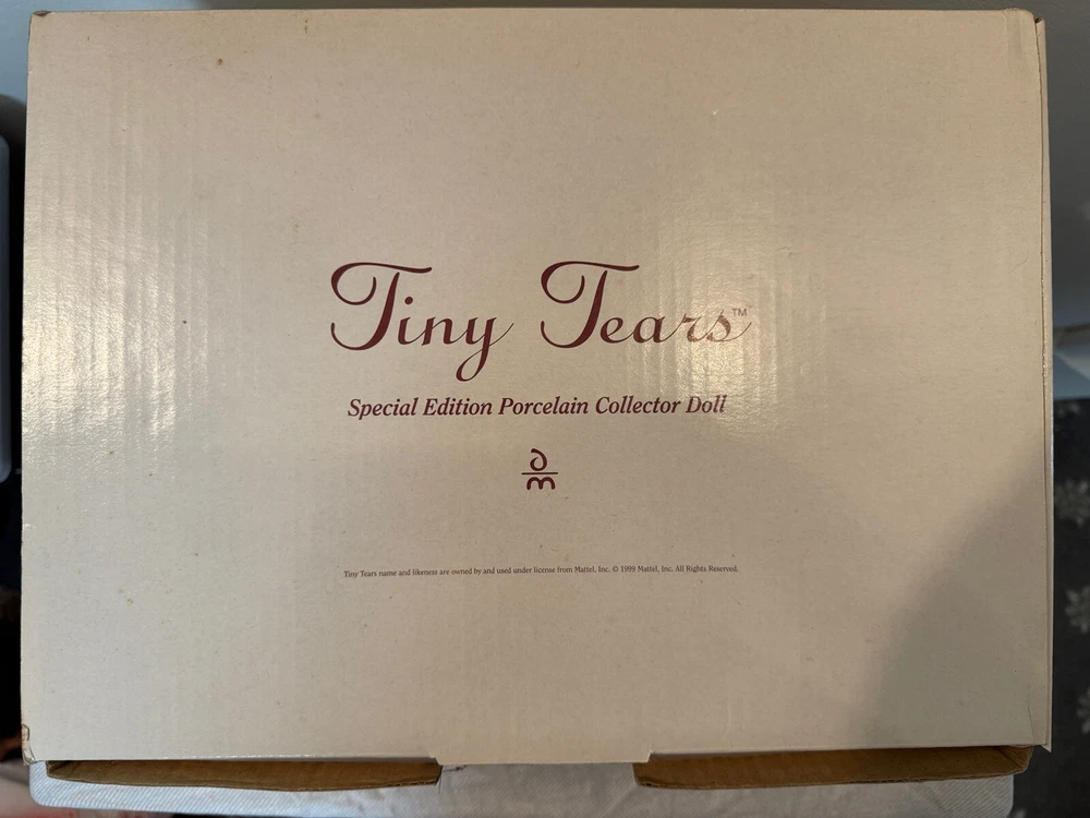 Doll Hair Color: Light Brown Year Manufactured: 1999 Type: Porcelain Doll Ethnicity: Caucasian Doll Complexion: Light Brand: Danbury Mint Character: Tiny Tears Set Includes: Doll Vintage: Yes Doll Eye Color: Blue Material: Porcelain Original/Licensed Reproduction: Licensed Reproduction Time Period Manufactured: 1990-1999