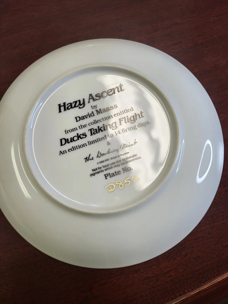Culture: American Antique: No Vintage: Yes Features: Stackable Shape: Round Country/Region of Manufacture: United States MPN: na gtin13: Does not apply Color: Multicolor Pattern: ducks Theme: ducks Handmade: No Character: hunting Era: Late 20th Century (1970-1999) Type: Collector Plate Occasion: All Occasions Style: Decorative Brand: Danbury Mint Custom Bundle: No UPC: Does not apply Material: Bone China Time Period Manufactured: 1990-1999