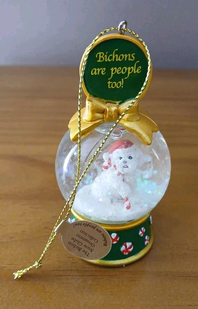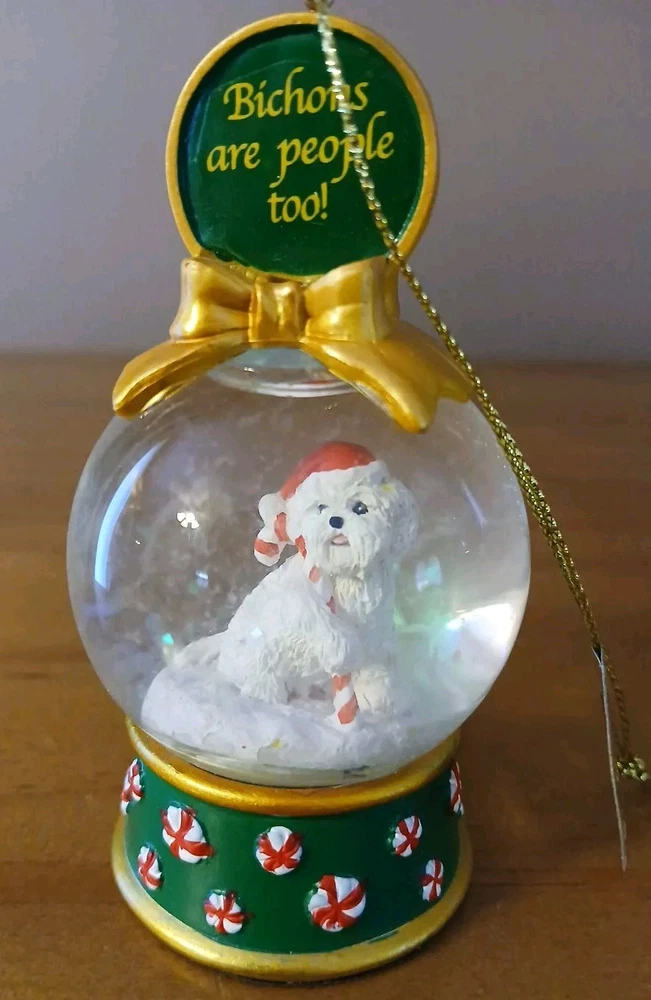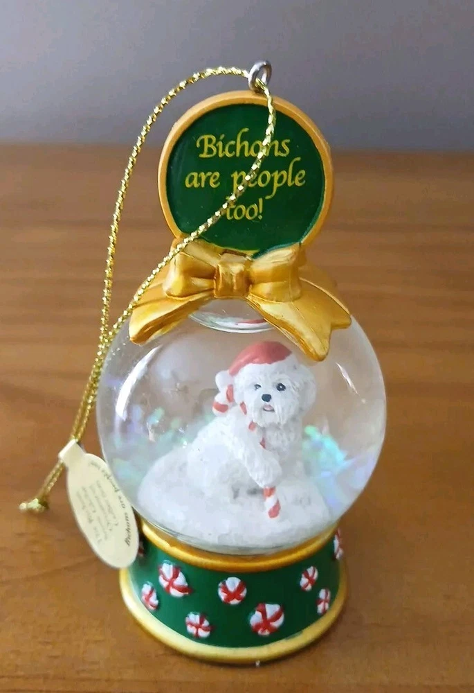 Danbury Snow Globe Dog Ornament Collection Christmas 3" Bichons are People Too"