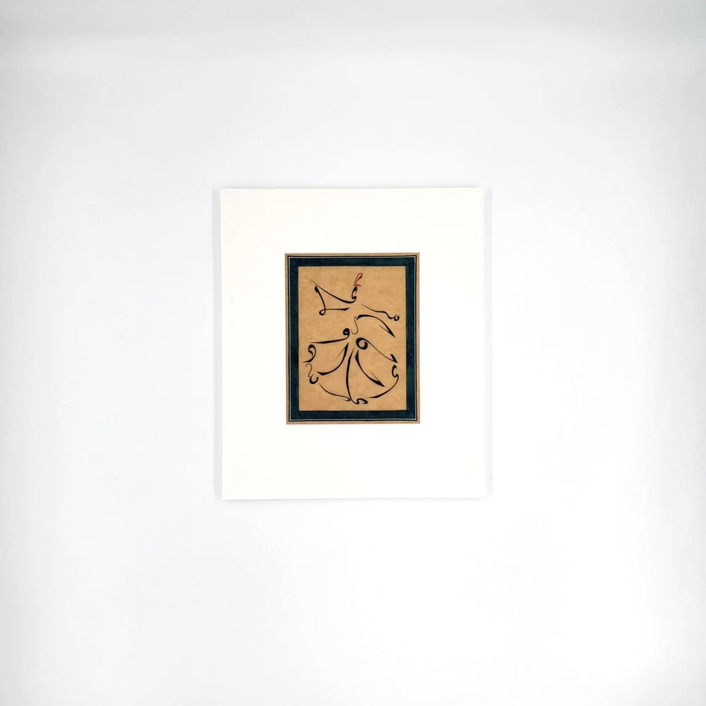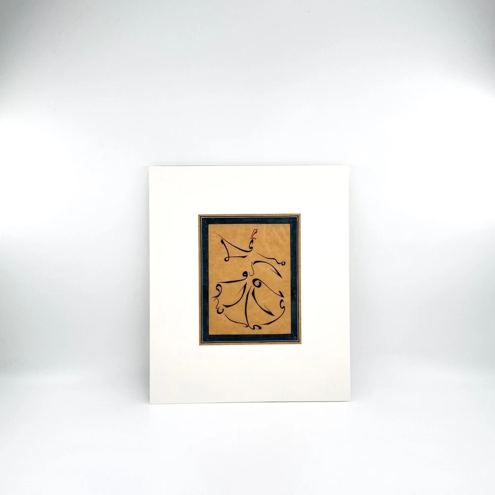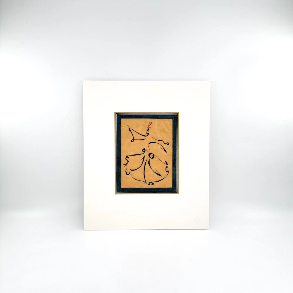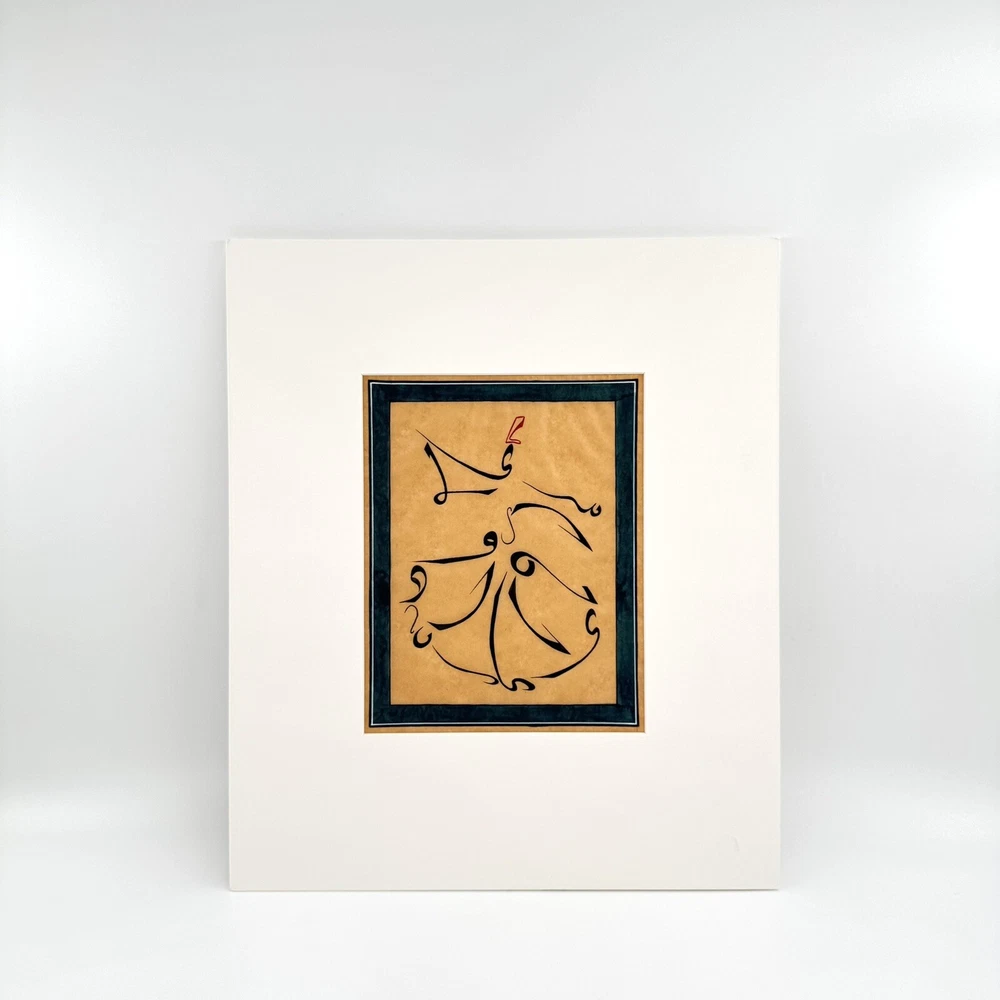 White Mat ready to frame it ( Mat Size: 14.7x12.4 inch >< 37.4x31.7cm ) The "Dancing Dervish Sufism Calligraphy Art Painting" is a unique and contemporary piece created by artist B.Kobilov in 2017. Measuring 7.1 x 6 feet, this framed painting features calligraphy, miniatures, and a blend of various art styles such as art deco, abstract, and folk art. The artwork showcases a fusion of Asian culture and inspirational themes, handcrafted with acrylic on cardboard and paper. Signed by the artist, this piece adds a touch of fantasy and sophistication to any wall or interior design space.