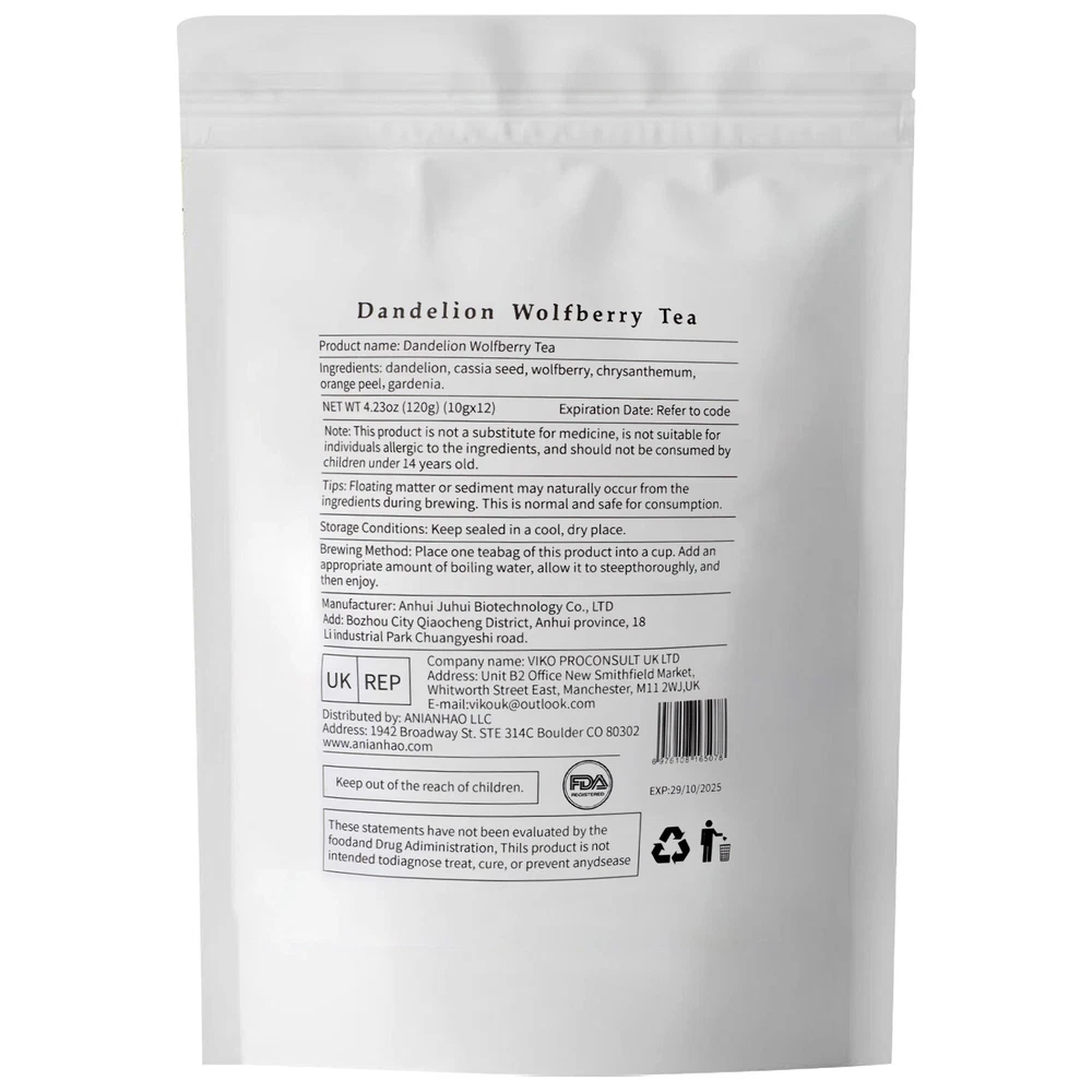 PACKAGE INCLUDES: 1pcs * Dandelion Wolfberry Tea - This tea combines the potent properties of dandelion, wolfberry (also known as goji berry), and other botanicals to create a soothing and nourishing beverage - Each 120g pack provides a generous supply of this unique tea, allowing you to enjoy its earthy and slightly sweet flavor - By combining these powerful ingredients with other complementary herbs, experience the benefits of this ancient herbal remedy - Simply steep a few teaspoons in hot water, and let the aromatic blend work its magic Specifications: 120g(12bag*10g)/Box Storage: Placed in a cool dry place,after opening your eat as soon as possible PACKAGE INCLUDES: 1pcs * Dandelion Wolfberry Tea Payment Delivery details Terms of sales About us Contact us Payment USE ebay payments .many thanks for your cooperation Delivery details Upon receipt of the payment, All orders will be dispatched within 24 hours by royalmail 1st service. UK:2-3working days Please confirm your shipping adress when pay for item. Appreciated for your understanding and cooperaton . Terms of sales We respect your privacy and as such all items will be posted to you in plain packaging, with no clue as to what is inside. Only your name and address will be on the front of the package and there will be no invoice inside. About us Return Accepted Condition of sales payment should be received within 3 days from the end of the auction All non-pay bidder will be reported. Products without any quality?problem can't be refund. · Products with quality problme in 30 days can be returned and refund. Not accept return when you got the item beyond 30 days. If there any quality problem pls kindly contact us within 7 days. We will try our best to solve the problem for you. Notice: Please keep it in good condition and customer need to pay for the return shipment. Contact us If you have any problems,Please contact us feel free. To ensure a swift response, please use ebay mail system to send messages, Please visit our shop for hundreds of funcky posters When delivery is delayed or items are damaged during delivery, please email us first. We are here to help. We always reply your emails within 48 business hours . If you do not hear from us after 48 hours, please first check your email fiter and junk mail box. Many times, this is the reason that prevents our reply from reaching you. You may also need to email us via ebay contact member page because we may also have filtered your incoming emails.