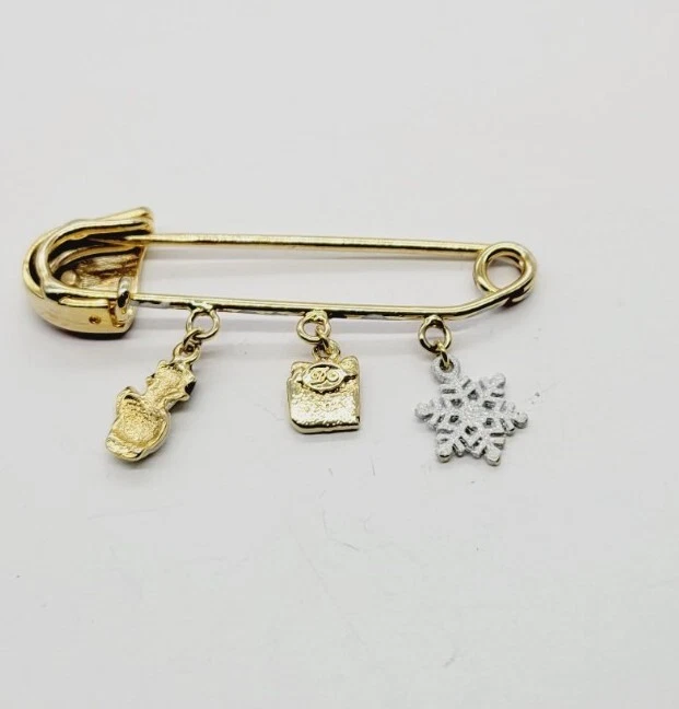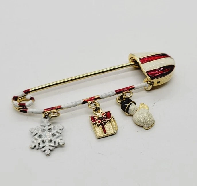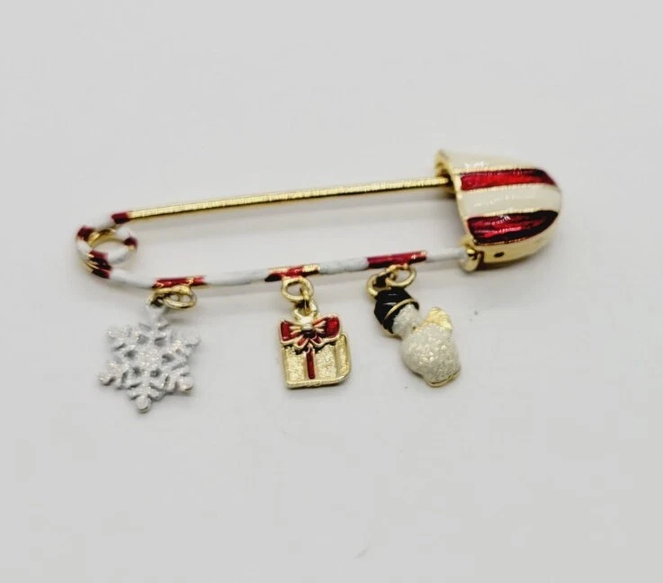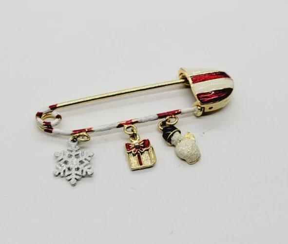 Danecraft Safety Pin Christmas Charm Brooch Gift Santa Gold tone Dangle RARE