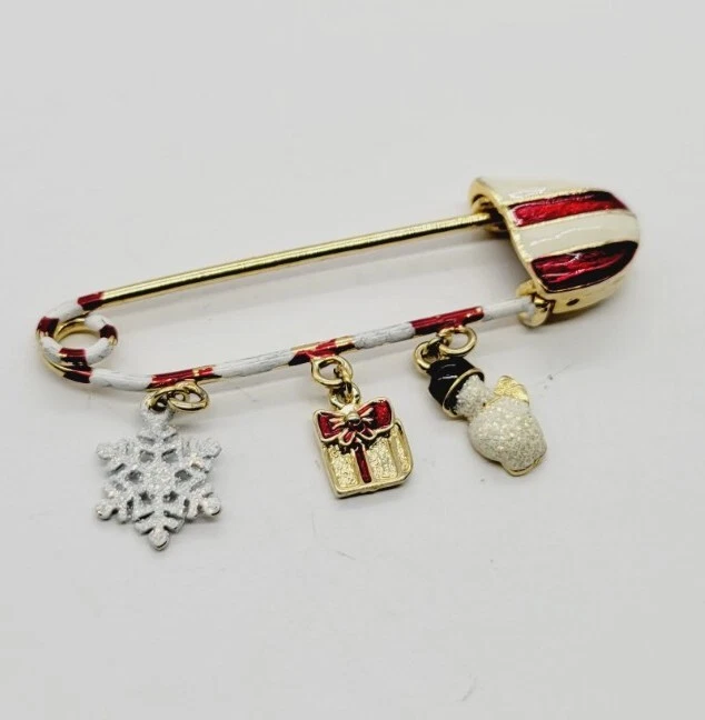 Main Stone Color:MulticolorItem Length:1.25 in x 2.5 inOccasion:ChristmasVintage:YesWholesale:NoAntique:NoSigned:NoSeller Warranty:NoBrand:DanecraftBase Metal:UnknownType:PinHandmade:NoPersonalize:NoColor:MulticolorCustomized:NoTheme:HolidayShape:Safety PinMaterial:Enamel