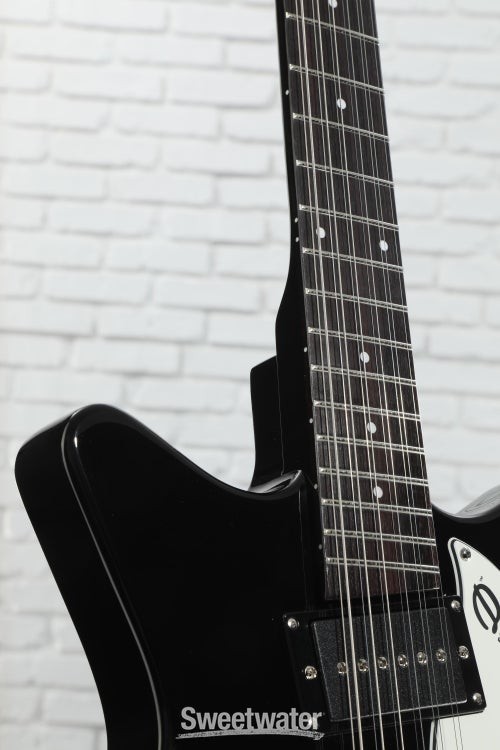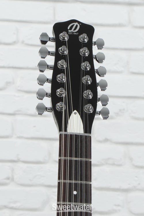12-string Hardtail with Split H/S Pickups The Danelectro 59X12 — 12-string version of the groundbreaking 59XT — serves up a fragrant 12-string bouquet and a hearty spoonful of that classic Dano Shorthorn style. The 59X12’s neck P-90 and coil-split lipstick humbucker are your ticket to a world of folksy cleans and jangly pop nostalgia, with a broad palette of blitzed-out rock and psychedelic textures just waiting to be discovered. The 59X12’s resonant hardwood body and snappy maple neck operate in perfect harmony, with a pau ferro fingerboard adding to the guitar’s overall richness and sustain. A hardtail bridge (adjustable) gives this affordable 12-string rock-solid intonation and sustain. Rounding out this stylish semi-hollow is a set of die-cast chrome knobs and complementary chrome hardware. Dano Shorthorn style The iconic Shorthorn design makes a triumphant return in the Danelectro 59X12 12-string electric guitar. Tapping the hardwood/plywood semi-hollow body reveals a rich resonance, Sweetwater is an Authorized Danelectro Dealer Genuine Open Box Item Sweetwater's 2-year warranty and 55 point inspection Danelectro 59X12 12-string Electric Guitar - Black 12-string Semi-hollowbody Electric Guitar with Spruce Body, Hardboard Top and Back, Maple Neck, Pau Ferro Fingerboard, 1 Single-coil Pickup, and 1 Humbucking Pickup - Black 12-string Hardtail with Split H/S Pickups The Danelectro 59X12 — 12-string version of the groundbreaking 59XT — serves up a fragrant 12-string bouquet and a hearty spoonful of that classic Dano Shorthorn style. The 59X12’s neck P-90 and coil-split lipstick humbucker are your ticket to a world of folksy cleans and jangly pop nostalgia, with a broad palette of blitzed-out rock and psychedelic textures just waiting to be discovered. The 59X12’s resonant hardwood body and snappy maple neck operate in perfect harmony, with a pau ferro fingerboard adding to the guitar’s overall richness and sustain. A hardtail bridge (adjustable) gives this affordable 12-string rock-solid intonation and sustain. Rounding out this stylish semi-hollow is a set of die-cast chrome knobs and complementary chrome hardware. Dano Shorthorn style The iconic Shorthorn design makes a triumphant return in the Danelectro 59X12 12-string electric guitar. Tapping the hardwood/plywood semi-hollow body reveals a rich resonance, unplugged or onstage, which is why you could see earlier iterations of this guitar in the hands of notable axemen Syd Barrett and Jimmy Page. Versatile H/S pickups The 59X12 ain’t your grandaddy’s Dano. This retro reimagining of the classic 59 is a thoroughbred rock stallion, with a snarling P-90 in the neck position and a full-range lipstick humbucker at the bridge. The angled pickup design is effective at balancing notes across all 12 strings, giving bridge-position high octaves a bit more warmth and neck-position low octaves a touch more clarity. What surprised us at Sweetwater is how well the humbucker cleans up, especially in the split configuration. Engaging the push-pull coil-split unearths more of the iconic jangle and bite that 12-string Danelectros are best known for. Adjustable hardtail bridge Intonation is a critical part of the 12-string recipe. That’s why your 59X12 comes loaded with an adjustable hardtail bridge for rock-solid stability between octaves. Paired with its other assets, there’s no question: the Danelectro 59X12 12-string from Sweetwater is a lot of guitar for not a lot of dough. Danelectro 59X12 Features: A stylish semi-hollow 12-string with split H/S pickups Celebrated Dano design: Shorthorn body, Coke bottle headstock, lipstick pickup covers Taps into folksy cleans and classic pop jangle Opens up into blitzed-out rock and psychedelic tons Versatile onboard electronics P-90 single-coil neck pickup Lipstick humbucker bridge pickup with push-pull coil split Adjustable bridge allows for rock-solid intonation Specification Detail Number of Strings 12 Left-/Right-handed Right-handed Body Type Semi-hollowbody Body Shape 59X12 Body Material Spruce Top Material Hardboard Color Black Body Finish Gloss Polyester Neck Material Maple Neck Shape C Neck Joint Bolt-on Radius 14" Fingerboard Material Pau Ferro Fingerboard Inlay Dots Number of Frets 21 Scale Length 25" Nut Width 1.78" Nut Material Aluminum Bridge/Tailpiece Adjustable 12-string Tuners Die-cast Chrome Neck Pickup Vintage-style Single-coil Bridge Pickup Dual Lipstick Humbucker Controls 1 x master volume, 1 x master tone (push/pull bridge coil-split) Switching 3-way toggle pickup switch Strings D'Addario, .010-.046 Case/Gig Bag Sold Separately RETURN INFORMATION We want you to be completely happy with your purchase from Sweetwater. If you are not satisfied with your product, you may return it for a refund of the purchase price within 30 days. If your purchase was eligible for Free Shipping, the shipping cost will be deducted from your credit or refund. Returns must be in the complete and original packaging with all accessories and complete documentation (Owner's Manual, warranty card, quick start guides, etc.), show no signs of wear or use, and include a Return Authorization number or be subject to a restocking fee.