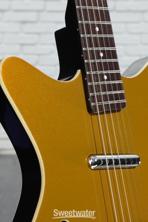 The Other Masterpiece Released in 1959 Jangle, gristle, snarl, and soul: the late-’50s Danelectro sound is unmistakable. With a double-cut Shorthorn body shape and vintage Lipstick pickups, the Danelectro Fifty Niner DC semi-hollowbody electric guitar oozes with early rock’ n’ roll attitude. The Fifty Niner DC’s lightweight hardboard/spruce body delivers the signature Dano sound — a lively, assertive warmth somewhere between a solidbody and a more traditional semi-hollowbody, complete with a center block for feedback suppression, so you can always pair the Fifty Niner DC with your favorite pedals and effects. You’ll love how the Fifty Niner’s lightweight build provides all-night comfort onstage without the delicate fragility of traditional semi-hollowbody electrics. The Fifty Niner DC’s maple neck and rosewood fingerboard keep playability agile and fluid, while the Shorthorn body shape provides excellent access to frets closest to the body. Unleash a wallet-friendly masterpiece and re-create authentic vintage tones with the Sweetwater is an Authorized Danelectro Dealer Genuine Open Box Item Sweetwater's 2-year warranty and 55 point inspection Danelectro Fifty Niner DC Semi-hollowbody Electric Guitar - Gold Top Semi-hollowbody Electric Guitar with Hardboard/Spruce Body, Maple Neck, Rosewood Fingerboard, and 2 Single-coil Pickups - Gold Top The Other Masterpiece Released in 1959 Jangle, gristle, snarl, and soul: the late-’50s Danelectro sound is unmistakable. With a double-cut Shorthorn body shape and vintage Lipstick pickups, the Danelectro Fifty Niner DC semi-hollowbody electric guitar oozes with early rock’ n’ roll attitude. The Fifty Niner DC’s lightweight hardboard/spruce body delivers the signature Dano sound — a lively, assertive warmth somewhere between a solidbody and a more traditional semi-hollowbody, complete with a center block for feedback suppression, so you can always pair the Fifty Niner DC with your favorite pedals and effects. You’ll love how the Fifty Niner’s lightweight build provides all-night comfort onstage without the delicate fragility of traditional semi-hollowbody electrics. The Fifty Niner DC’s maple neck and rosewood fingerboard keep playability agile and fluid, while the Shorthorn body shape provides excellent access to frets closest to the body. Unleash a wallet-friendly masterpiece and re-create authentic vintage tones with the Fifty Niner DC semi-hollowbody electric guitar from Sweetwater! A sealed semi-hollow deal It’s an ingenious semi-hollow build that’s stood the test of time: a spruce body frame capped with hardboard paired with a center block that eliminates feedback. Liable, rugged, and beyond versatile, no guitar body sounds quite like a Danelectro’s body! The Fifty Niner’s nuanced resonance and tonal range give this guitar a unique edge for everything from vintage rockabilly blues to modern indie faves. Plus, cream body binding and a chocolate back give the Fifty Niner DC veritable retro appeal to match. Riveting tone: more than just lip service The Fifty Niner DC is known for its jangly mix-cutting midrange, but the onboard Lipstick pickups can dole out a wide assortment of vintage-tinged tones. The bridge pickup is your go-to for jangle and leads with focused bass, punchy midrange, and treble that’s spicy or sweet (depending on tone knob settings). The neck Lipstick pickup provides enhanced low-frequency gristle that fills sonic space and comes to life when played clean or driven. Turning both pickups on reveals a unique aspect of Danelectro wiring — series wiring in the middle position. Compared to the parallel wiring found on most electric guitars, the Fifty Niner’s series-wired position produces an extra-beefy tone with roaring bass/midrange response and less treble. Faithful ’50s design Today, Danelectro ‘50s pickup specs read like diligent recitations of the originals. Inside, Alnico VI magnets uniquely wrapped with coil and tape make these pickups sound as authentic as they look. Outside, the chrome covers are made from 80/20 brass zinc, just like the tubes Danelectro bought from a cosmetics factory back in the day, a detail that proves the Fifty Niner is a fully worthy heir of a legendary sound. Premium playability Sweetwater guitarists found the Fifty Niner’s comfortable “C” profile maple neck and 25-inch fingerboard scale pack a stellar blend of playability and range, further enhanced by the ’59 shape’s dual body cutaways for giant leaps and stress-free solos. What’s more, pitch-perfect tone is always within reach; the Fifty Niner DC comes outfitted with a bone nut and adjustable saddles for reliable tuning and long-term performance. Danelectro: an iconic American brand Founded in 1947, Danelectro produced guitar amps throughout the 1940s before expanding into guitars in the ’50s. With their beloved quirky hollowbody designs, hardboard/plywood construction, and lipstick pickups, the iconic Danelectro designs are instantly recognizable. Among other innovations, Danelectro introduced the baritone guitar in 1956 and the electric sitar in 1967. From guitar gods Jimmy Page and Jeff Beck to Who bassist John Entwistle (check out the bass solo on “My Generation”), country superstar Glen Campbell, Tom Petty lead guitarist Mike Campbell, and the ever-eclectic Wilco guitarist and solo artist Nels Cline, Danos have become staples in the guitar and bass arsenals of top artists in all genres. Now Danelectro is back and better than ever: Sweetwater is proud to offer you this formidable lineup of iconic vintage-inspired instruments. Danelectro Fifty Niner DC Semi-Hollowbody Electric Guitar Features: Legendary semi-hollowbody guitar from a groundbreaking company Lightweight spruce body and hardwood top and back deliver signature midrange tone Maple neck with rosewood fingerboard offers wonderful playability and response Lipstick single-coil pickups bring vintage midrange punch and trebl