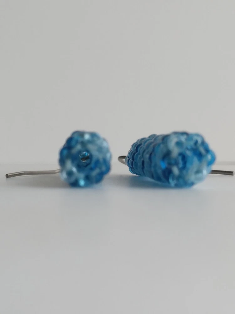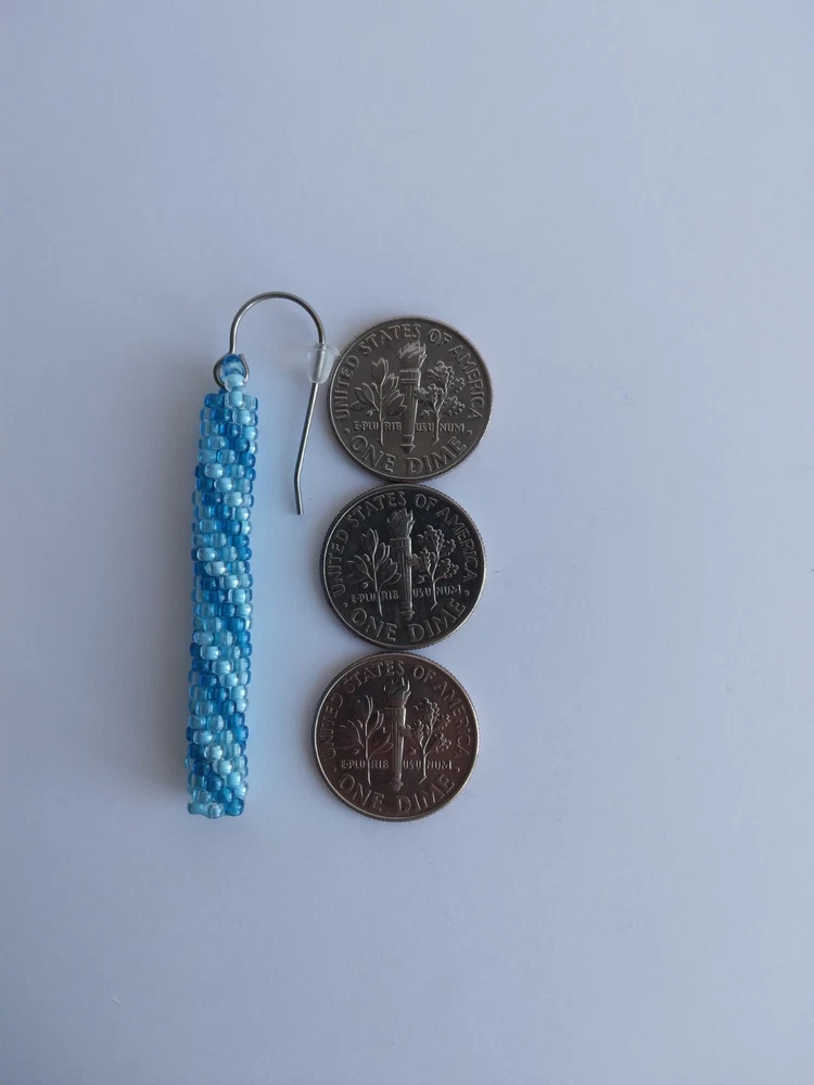 Made for any occasion such as birthdays, parties, graduations, weddings, holidays and casual or professional wear, These pairs of 57mm long, 6mm wide seed bead tube earrings are handmade using peyote stitch technique, with blue Miyuki glass seed beads arranged into a spiral design and light blue Nymo nylon thread. Earring Hooks are nickel and lead free, Pure titanium for sensitive skin hypoallergenic needs.