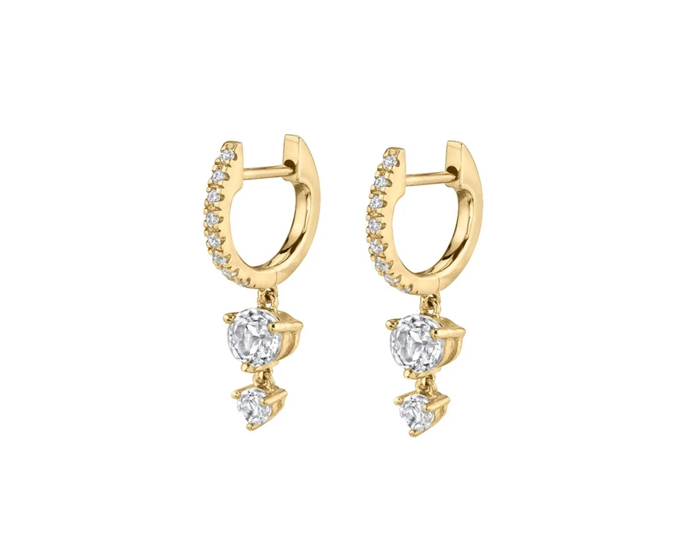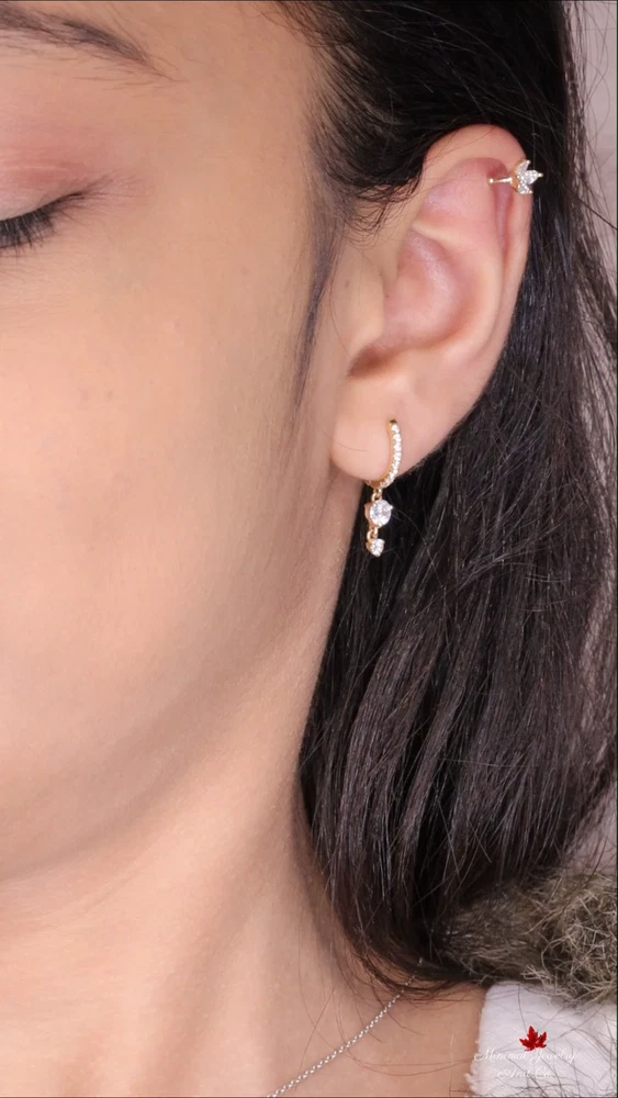 Crafted with precision, these 14k yellow gold huggie hoop earrings exude timeless elegance. The design features a delicate circle shape adorned with a complement of white/colorless diamonds, offering a sparkle that's both understated and captivating. With a metal purity that guarantees durability and shine, these earrings are a versatile addition to any jewelry collection. DESCRIPTION -------------------- • Earring Size: → Earring gauge: 20→ Inner Diameter: 8 mm → Outer diameter: 10 mm • Moissanite Details: → Shape: Round → Measurement: 4.OO mm + 2.50 + 1.30 mm → Number of Stone: 2 + 2 + 16 → Total Ctw: 0.95 → Color: Colorless → Clarity: VVS • Metal Details: → Metal Type: 14k Yellow Gold Warranty and Service: ------------------------------ • We offer a 1 Year warranty on all our Jewelry. • We also provide paid service after completion of the warranty. Thank you for visiting our store, see you soon. --------------------------------------------------------------
