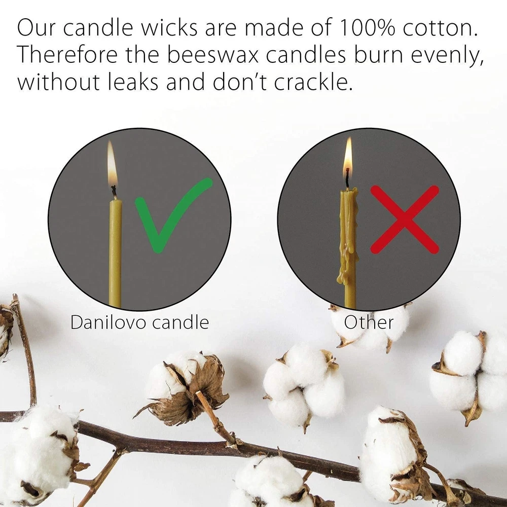 Danilovo Pure Beeswax Candles - No-Drip Smoke-Less Tall Thin Taper Candles – ...