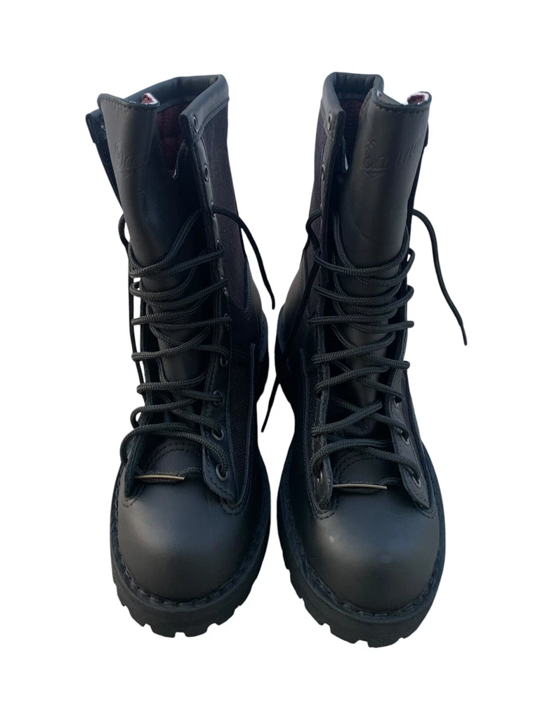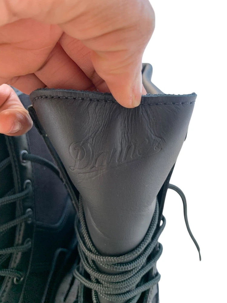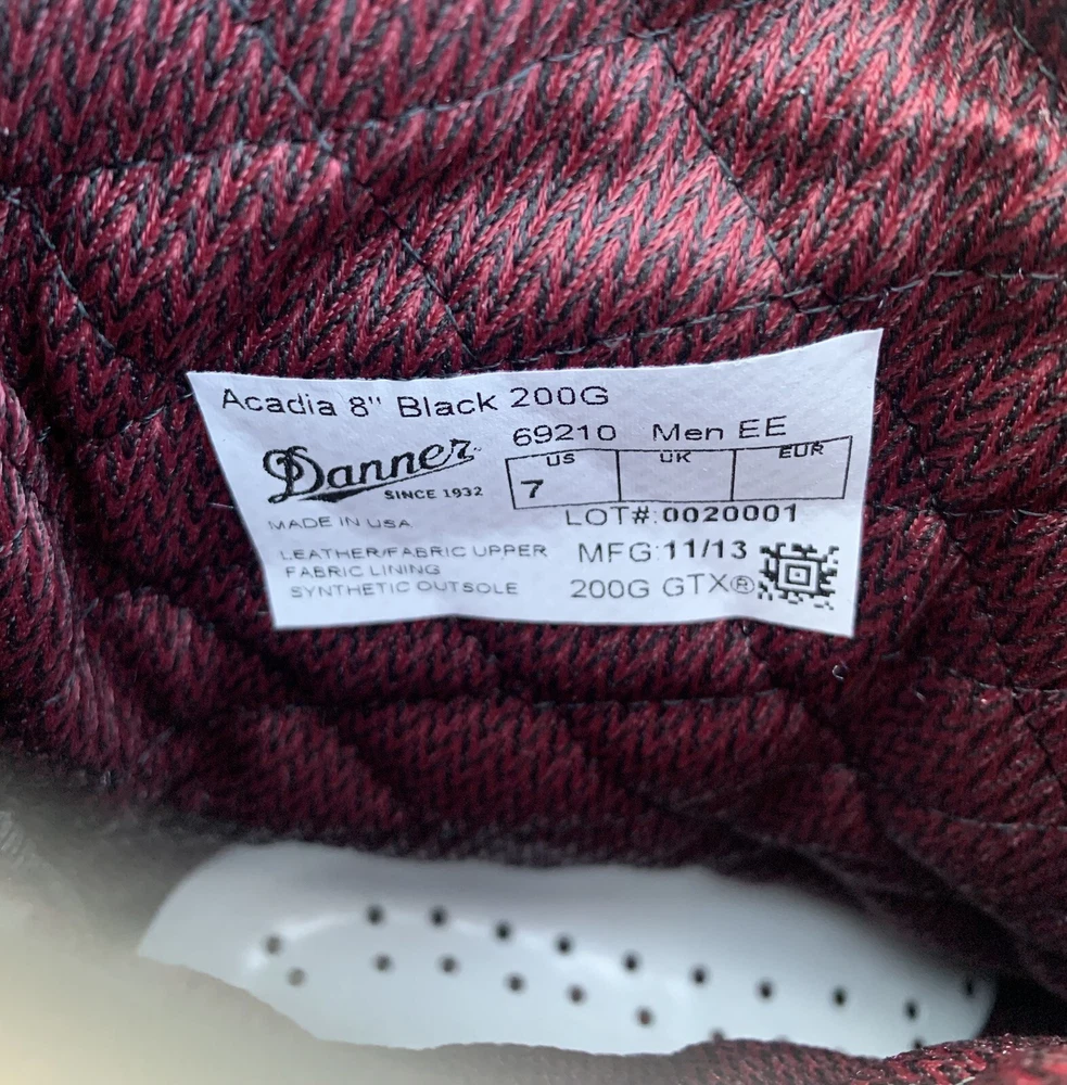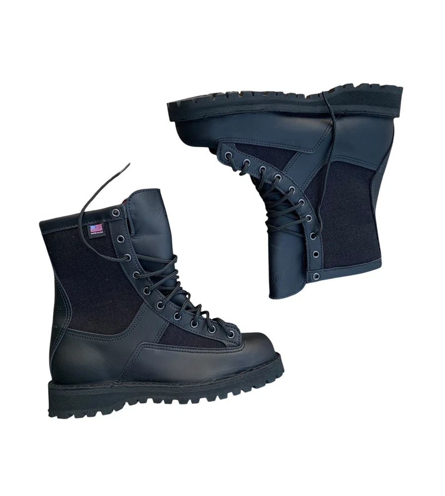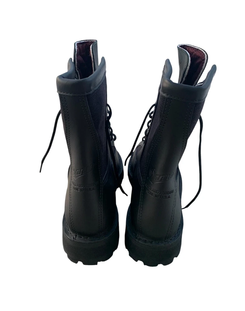 The Danner Acadia 8" Black Combat Gore-Tex Boots are a vintage style boot designed for men in size 7 EE. Handmade in the USA, these boots feature a round toe shape, lace-up closure, and mid-calf shaft style. They are made of black leather with accents like lace, eyelet, and logo details. The boots have arch support, waterproofing, and insulation, making them suitable for winter, fall, and spring wear. The Danner Acadia boots are part of the Danner product line and embody a USA theme.