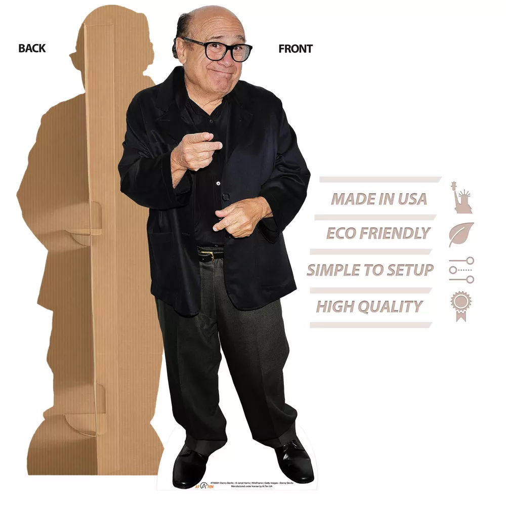 Danny DeVito Cardboard Cutout Life Size Standup Cardboard Print 59 х 18 inches CARDBOARD CUTOUT - great realistic picture in a true height 59 in 18 In (149 cm 45 cm) , this Danny DeVito cutout would put a smile on everyone's face, just like the actor himself! A lifesize standee with advanced graphics is a perfect idea to create much fun and wow effect on any event! CARDBOARD STANDUP - the funny party decoration Danny DeVito stands on it's own. No need to support the cardboard cutout by additional stands. LIFE SIZE CARDBOARD CUTOUT - be ready to be surprised by the celebrity cutout life size in a high definition print, arrived in your dining room, living room or entrance area to make a lot of fun! HIGH QUALITY STANDEE - proudly manufactured in the USA, professionally designed and printed this Danny DeVito lifesize cutout will be a huge hit to any birthday or graduation party. No WRINKLES ON ARRIVAL - be sure to get your life size Danny DeVito standee photo print in a perfect condition, as we make sure to safely pack the cardboard cutout. Easy to assemble and can be used multiple times. Features Are you looking for a funny gift or a party hit? The Cardboard cutout Danny DeVito Life size Cardboard Standup is the best solution! Hit the party with DeVito! We propose really high quality cardboard stand up. The Frank Reynolds cutout is solid and sturdy, stands on it's own and looks so realistic that would put a smile on everyone's face. When you enter the room, be ready to meet the superstar Frank Reynolds! Lots of fun, laugh and snapshots with Danny are guaranteed! A life size cut out would impress anyone coming to your party, birthday, anniversary, event, festival or fair! Just imagine the face expression of your family member, when they bump into cardboard Danny DeVito in the lobby, living room, kitchen, closet or garage. Surprise your office employees by a new member and a great conversation starter. Make a joke gift with cardboard cutout Danny DeVito to your friend. Choose a Danny DeVito cardboard cutout as a gift to brighten your friend's day! WE hope you are ready to keep having fun with life size standee photo print, as we made it durable and tough. The stand-up can be folded and put up again. Unwrapped standup 59in x 18in (149 cm х 45 cm). Wrapped 22in x22in x 4in (56 cm x 56 cm x 10 cm). Please mind that it is a cardboard and it works best indoors. When outdoors it can be damaged by strong wind or rain. Take care of your standee and it would bring much happiness, fun and joy to your life! Details Package Dimensions: 24.5 x 24.4 x 4.8 inches Free Shipping All items are shipped from our US-based warehouses via FedEx, USPS, or UPS, depending on the destination and package weight. We aim to dispatch most orders within 24 hours of payment from Monday through Friday. Payment We accept payments through PayPal and major credit cards. Please complete your payment as soon as possible after purchase to expedite the shipping process. 60-day Money-Back Guarantee Your satisfaction is our priority. If you are not satisfied with your purchase for any reason, you may return it within 60 days for a full refund or replacement.