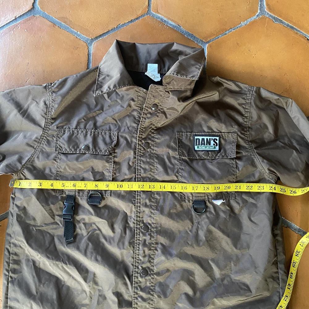 This high-quality briar proof jacket from Dan's Hunting Gear is a must-have for any serious hunter. Made in the USA, it is designed to keep you warm and protected from the elements with its thermal/insulated and windproof features. The solid brown color and various pockets make it a stylish and practical choice for any hunting trip. The jacket is sized medium, with a regular size type and is perfect for men. It is also water-resistant, making it an excellent choice for any outdoor activity. Get ready to tackle the great outdoors with this top-of-the-line briar proof jacket from Dan's Hunting Gear.