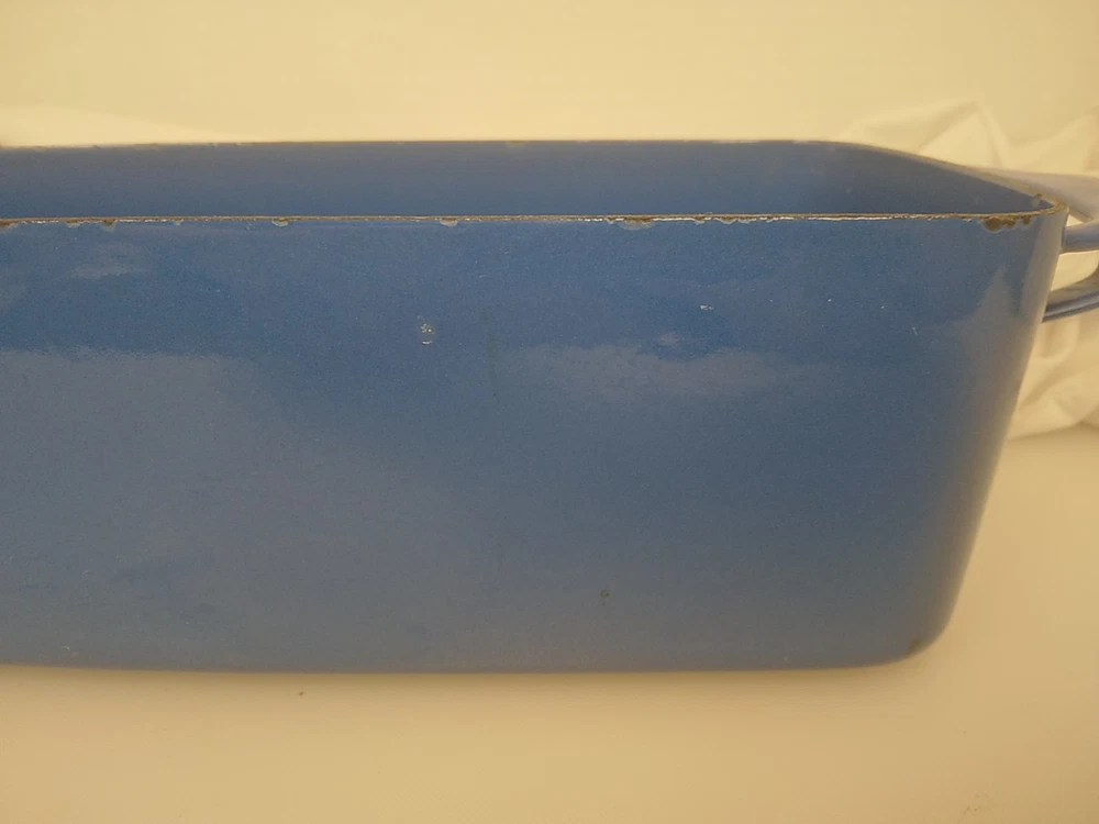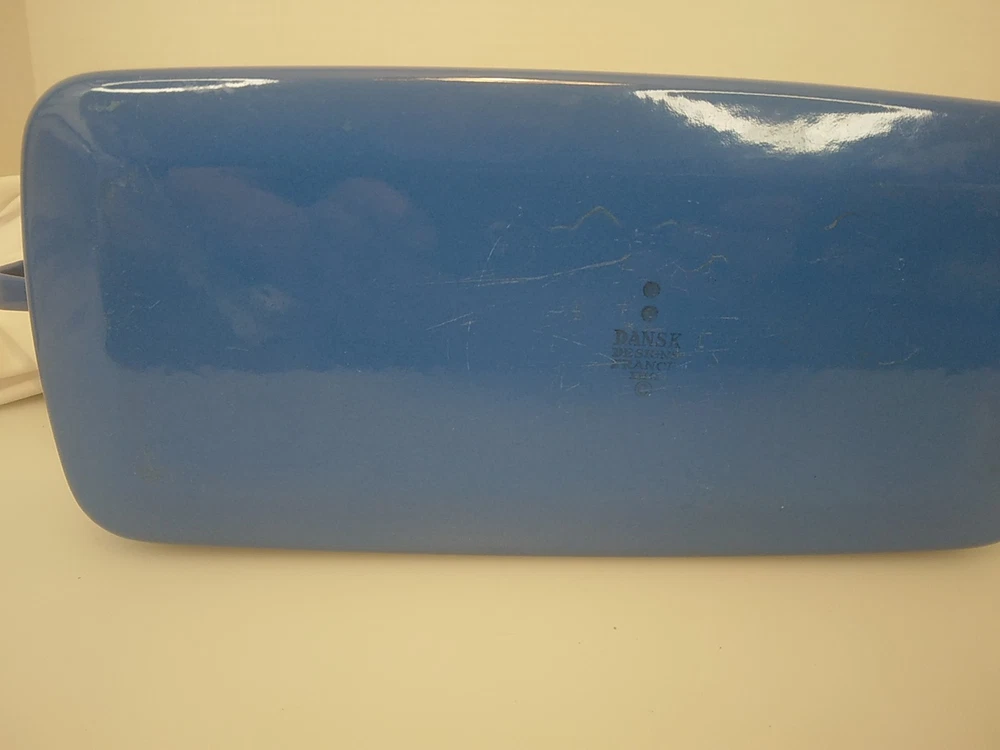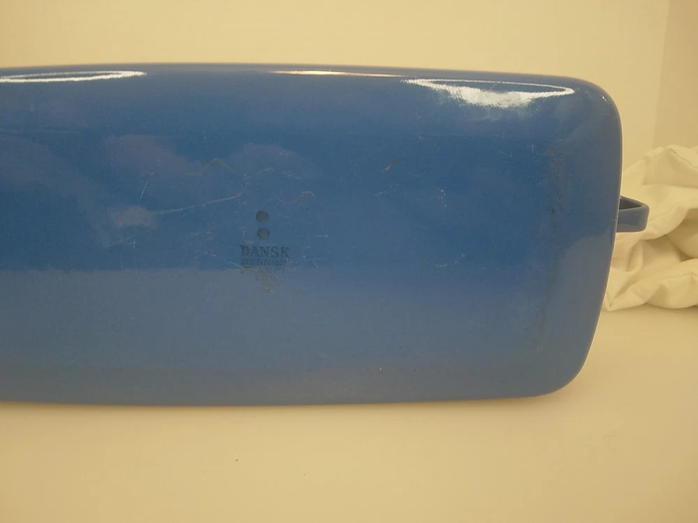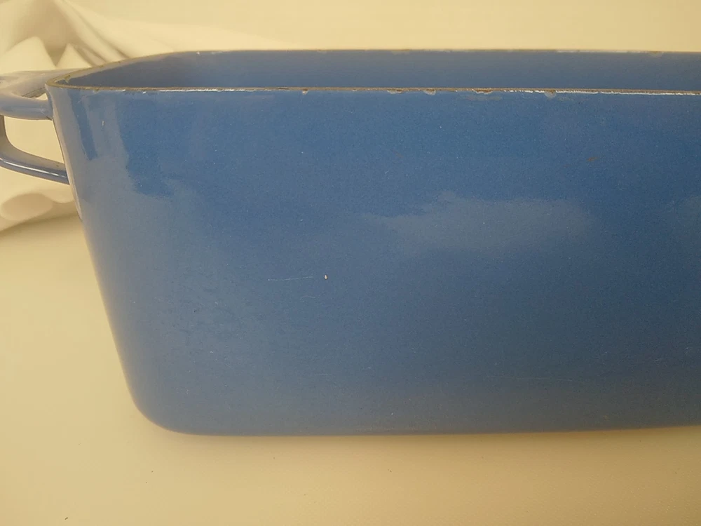 Some stains and chips on the enamel please see photos Crafted for the avid baker and home chef, this Dansk Kobenstyle loaf pan is a versatile addition to your kitchen collection. The durable enamel construction, featuring a vibrant blue hue, is suitable for a variety of ovens including electric, gas, induction, and steam ovens, as well as being compatible with pizza ovens. Measuring 11.25 inches in length, 5.25 inches in width, and standing 3.25 inches tall, this rectangular pan is perfect for creating loaves of bread, cakes, and stews. Its vintage charm, coupled with its functional design, makes it a must-have for any cooking enthusiast.