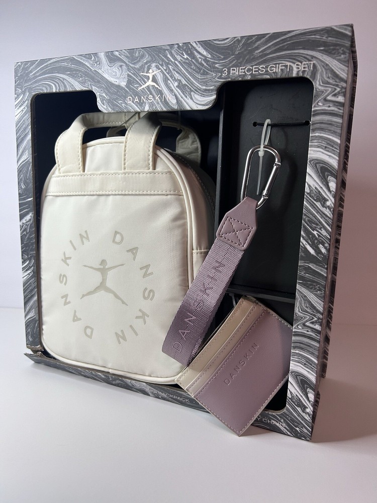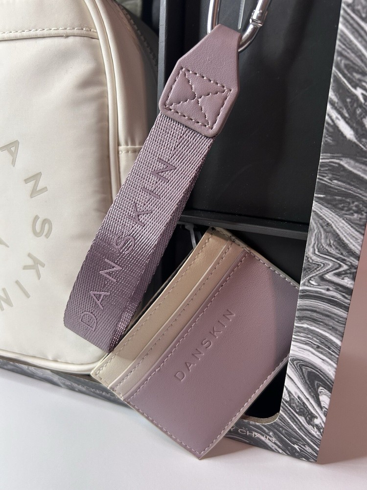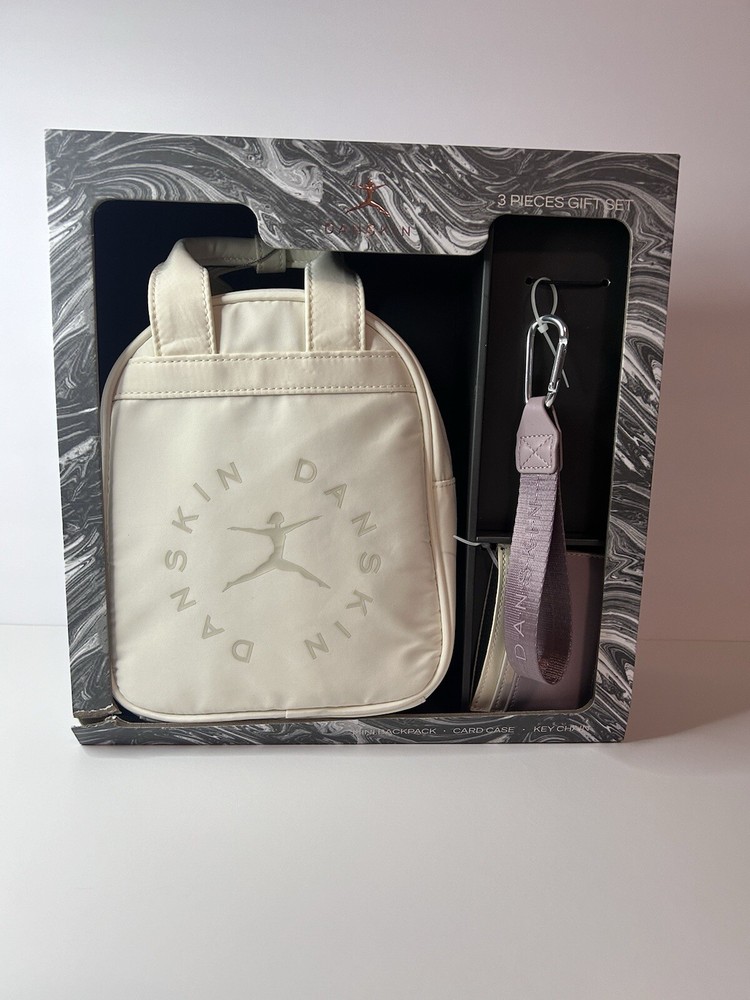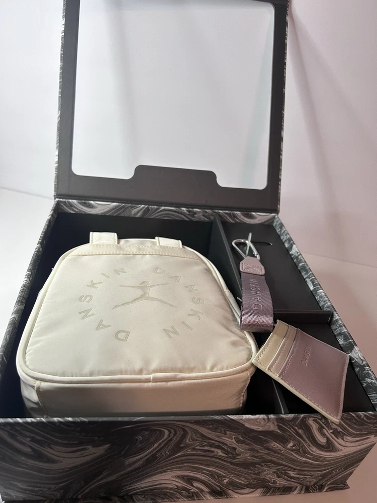 Nylon Double handles Shoulder strap Backpack with 7”Lx8”Hx4”D Cream color Zipper closure Key Holder Card case New in Box