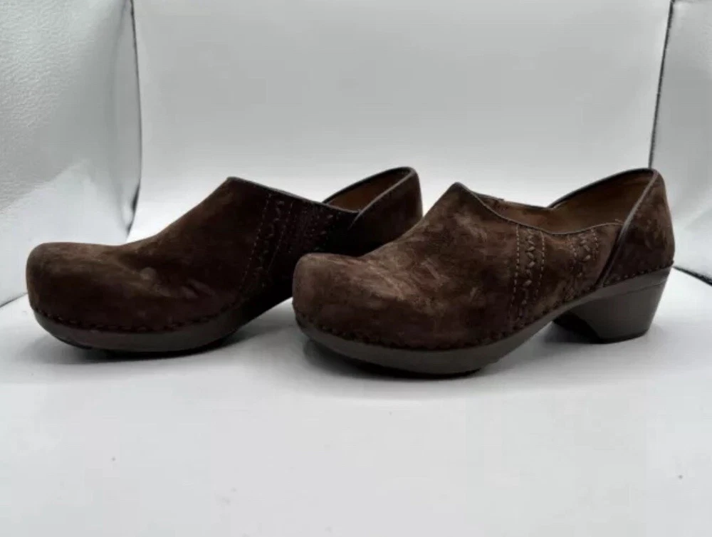 Dansko Clogs Women’s EU 35 US4.5-5 Brown Suede Comfort Nursing Shoes Slip On Pre-owned. Some wear from use as shown. See pictures.