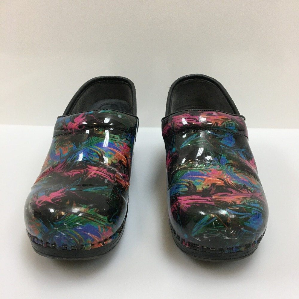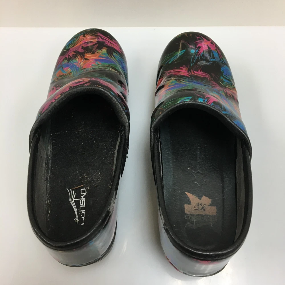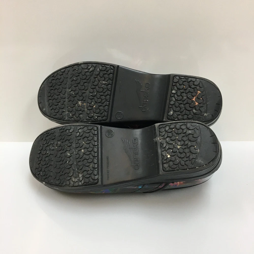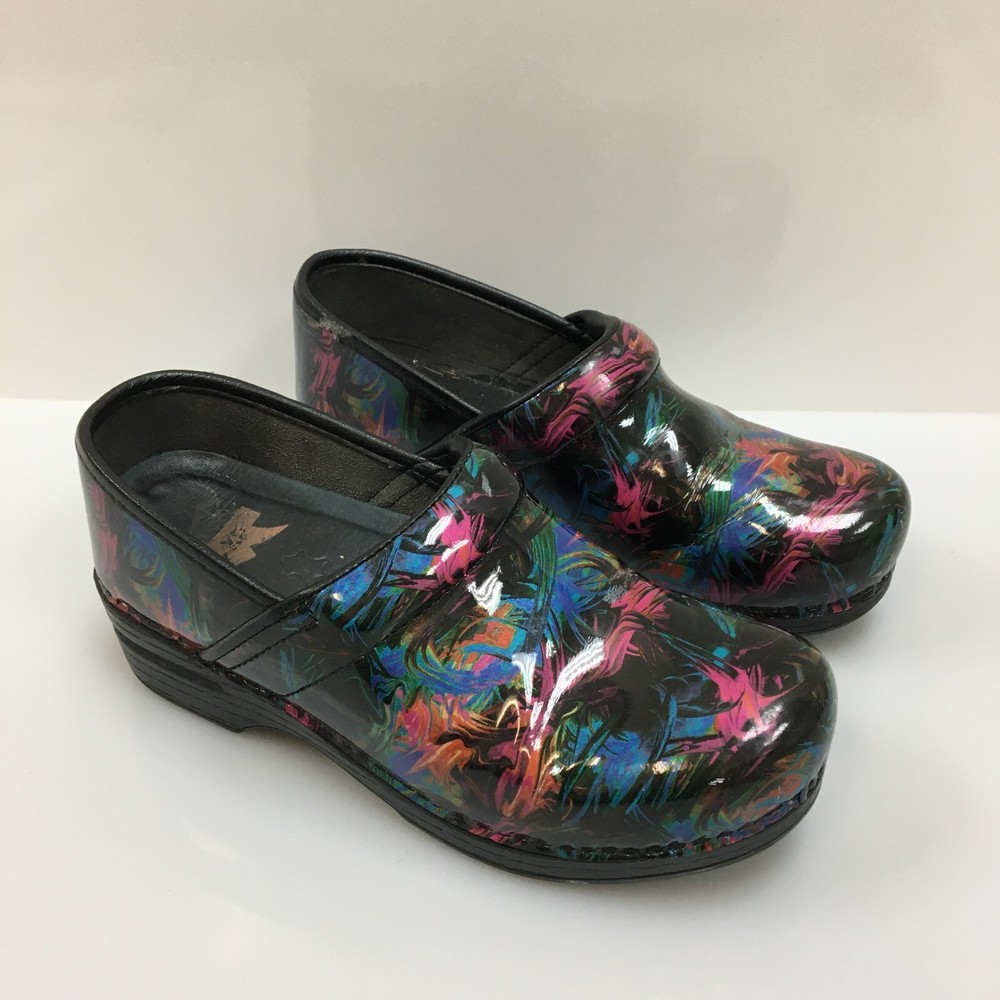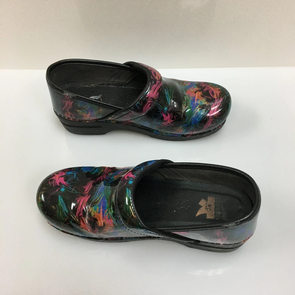 Occasion: Casual, Travel, Workwear Department: Women Lining Material: Leather Features: Arch Support, Comfort, Slip Resistant Insole Material: Leather EU Shoe Size: 38 Outsole Material: Rubber Type: Casual Performance/Activity: Walking Country/Region of Manufacture: China AU Shoe Size: 7.5 Style: Clog Heel Height: Mid (2-2.9 in) Pattern: Solid Shoe Shaft Style: Low Top Upper Material: Patent Leather Color: Black Product Line: Comfort Plus Brand: Dansko Toe Shape: Round Toe Theme: Classic, Modern, Occupational Season: Fall, Spring, Summer Accents: Logo Seller Notes: “GOOD: Pre-Owned. Minimal signs of wear. Please, See Pictures for Full ConditionColor:d” UK Shoe Size: 5.5 Model: Pro Xp US Shoe Size: 7.5 Shoe Width: Standard Heel Style: Wedge Closure: Slip On