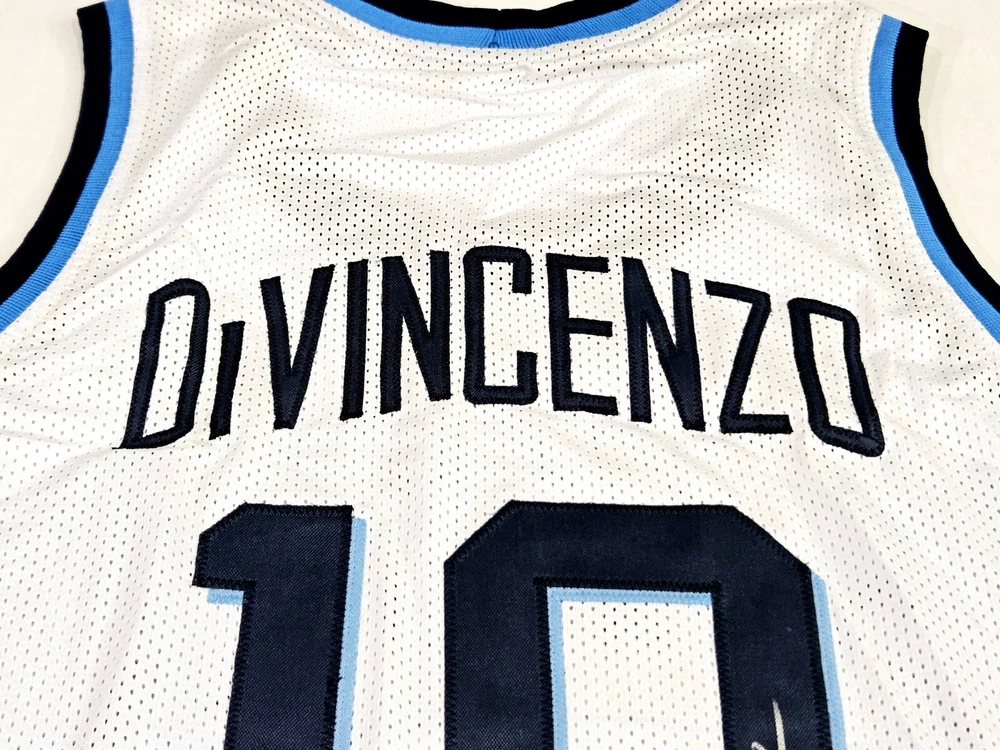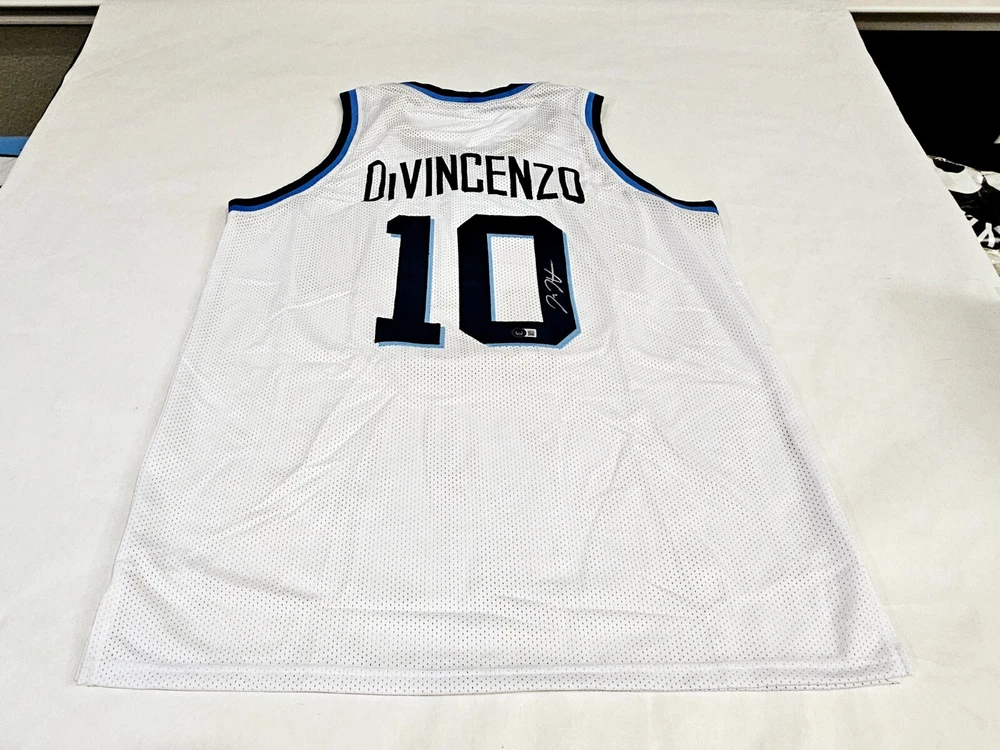 Dante DiVincenzo Villanova Wildcats Autographed Custom Jersey. Beckett Certification. Size Adult XL Note All Items Have A Certification of Authenticity Sticker On Them. These Certification Stickers Will Be From Beckett, JSA, PSA , RSA or OKAUTHENTICS. Some Items Will Come With A Matching Letter of Authencity. While Others May Not. Please Refer To Images Taken To See If Your Item Comes With A Matching Letter Of Authenticity. $5 USPS Shipping Combined shipping on all items won within 3 days. Each additional jersey won will only be $3 extra shipping