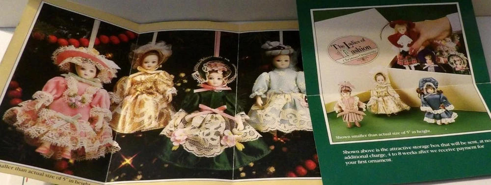 Danury Mint THE LADIES of FASHION CHRISTMAS DOLL ORNAMENTS Complete set of 25 Danury Mint THE LADIES of FASHION CHRISTMAS DOLL ORNAMENTS Complete set of 25 Danury Mint THE LADIES of FASHION CHRISTMAS DOLL ORNAMENTS Complete set of 25 Click images to enlarge Description Danury Mint THE LADIES of FASHION CHRISTMAS DOLL ORNAMENTS Complete set of 25 I take all my own pictures so you will not see stock photos on my site! Check out my store categories for more related items/accessories: Holiday Ornaments and Vintage Collectibles. ________________________________________________________________________________ PAYMENT METHOD *eBay payment system * If you have more than one winning auction from Monday through Sunday please PAY WITH ONE PAYMENT ONLY AFTER you receive an invoice from me. I send invoices out after auction ends daily so if you are bidding on more than one item please let me know. SHIPPING CHARGES *Shipping discounts are given for multiple wins. *Invoices are sent when auction has ended.5 *Shipping costs = actual shipping costs plus supplies. *Customs duties are extra on all International shipments. It is not included in the sale price or shipping charges. It is the buyers responsibility to pay for these charges once the package arrives in their country. _________________________________________ __________________________ Thanks for stopping by my site. All items come from a smoke & pet free environment. All items are sold "as is." Images sell! Get Supersized Images & Free Image Hosting Create your brand with Auctiva's Customizable Templates. Attention Sellers - Get Templates Image Hosting, Scheduling at Auctiva.com. Track Page Views With Auctiva's Counter