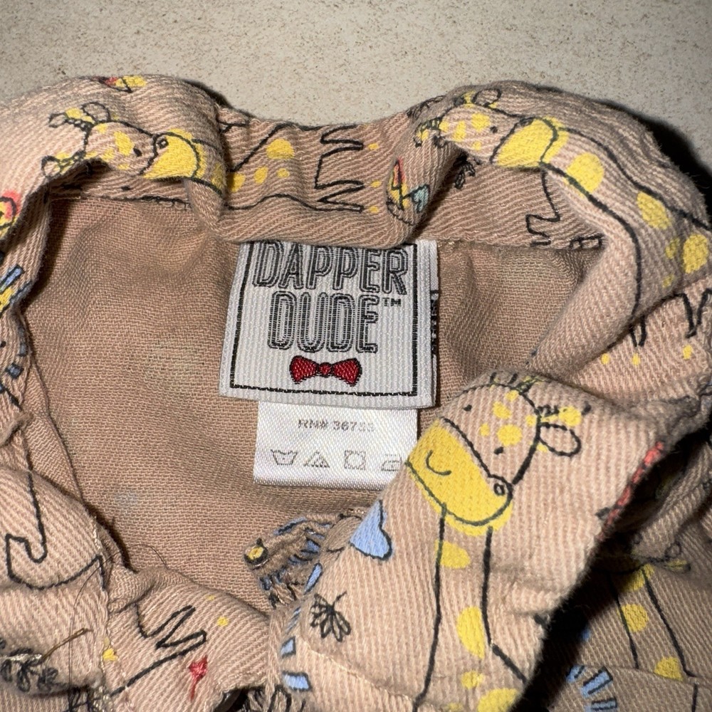 The Dapper Dude Baby Boy Clothing Size 3-6m Zoo Animals Outfit by Dapper World is a charming outfit/set featuring a multicolor design with an animal theme. This vintage-inspired piece is perfect for little boys aged 3-6 months, with a single piece included in the set. Made in Bangladesh, this outfit brings a touch of whimsy and style to your little one's wardrobe, making it a standout addition to any collection of baby clothing.