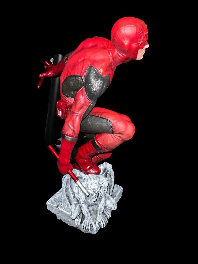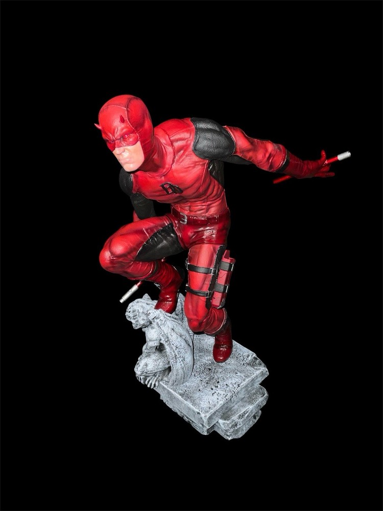This product is a custom painted fully assembled 3D printed statue of the character Daredevil from the Marvel Universe. It is intricately detailed and features red, black, and gray colors to represent the character's iconic look. The statue is beautifully crafted from resin material and is in a 1:4 scale, making it a large and impressive addition to any fan's collection of comic book memorabilia. Perfect for fans of Daredevil and comic book heroes, this statue is a must-have for any Marvel enthusiast.