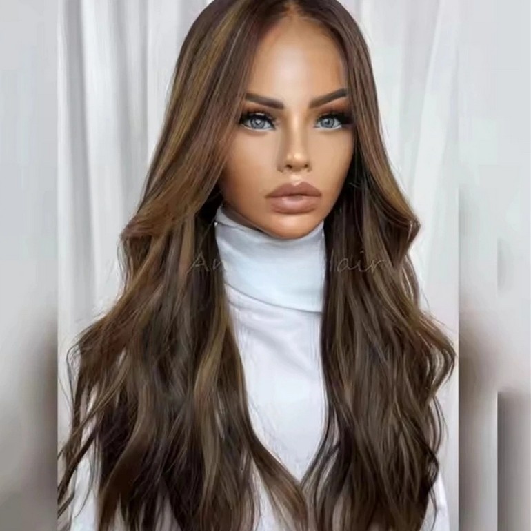 $ 128.35Long Brown Wave Wig With Bangs 13x4 Lace Front Wigs 100% Human Hair