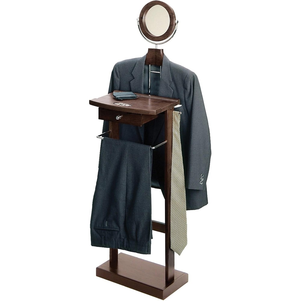 This valet stand is a game-changer for keeping my outfits organized and ready! The dark espresso finish adds a sleek, elegant touch to my room, while the sturdy wood base holds everything securely. I love the handy drawer for small essentials and the tilt mirror is perfect for quick checks. Assembly was straightforward, and now my clothes stay wrinkle-free and within easy reach. Highly recommend for anyone who wants both style and functionality!