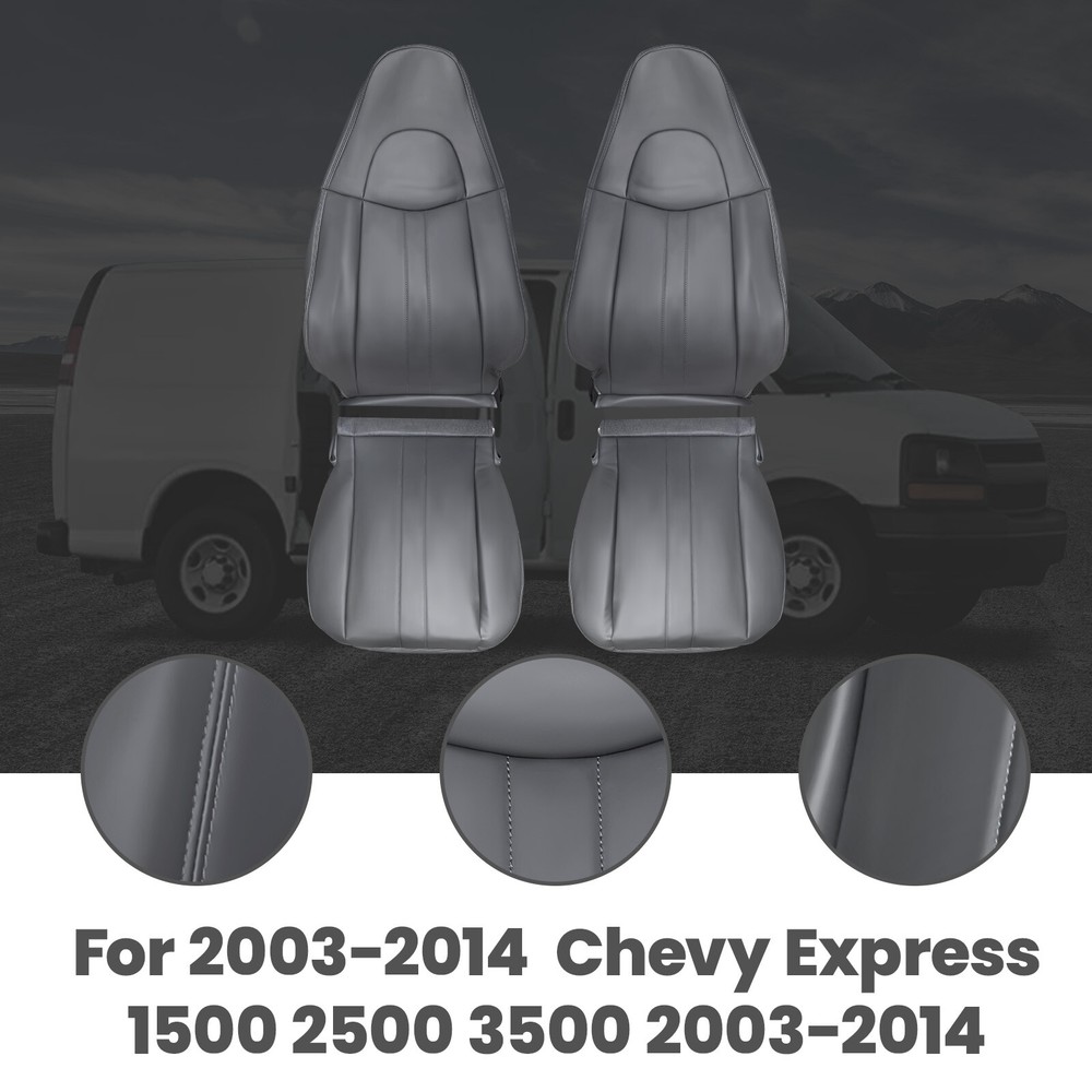 These seat covers are a game-changer for my Chevy Express! The dark gray leather looks sleek and fits perfectly, giving my worn-out seats a fresh, premium feel. Installation was quick, and the material feels durable yet comfortable. Great upgrade for the price—highly recommend!