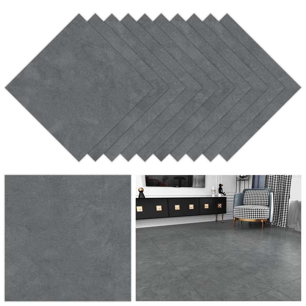 "Size: 12x12 inch,thickness is 0.058 inches/per tile, Waterproof. Self adhesive vinyl flooring are a peel and stick product, just peel off, used for house owners, renter friendly, making them ideally suited for DIY. Easy to install: No grout or special tools needed. Easy to cut, great adhesion allows them to be lifted for adjustment, removable without damaging the target surface and leaving sticky things. The stick and peel floor tiles are made of upgraded vinyl, thickened and durable version. Don't need to worry about damage easily. Tips: Please buy enough wallpaper at one time to avoid slight color difference between different batches. Before using peel and stick vinyl flooring, try to keep the surface dry, clean and smooth. Due to different angles of camera and light, there might be slight chromatic aberration." Peel and Stick Vinyl Tile: Easily transform any flat and dry flooring with our Vinyl Flooring Tiles. Our 32 pcs dark grey marble floor tiles are perfect for DIYers as they require no grout or special tools for installation.Just peel and stick. Detailed Design: 12" x 12" x 1.5mm, (32 tiles per box). 1.5mm≈0.058 inches. 32 pieces of vinyl tiles can cover 32 square feet . Our vinyl flooring tiles offer an affordable way to give your room a brand new look. The dark grey marble design is timeless and will elevate the aesthetic of any space. Versatile Application: Our peel and stick vinyl flooring tiles are ideal for indoor use. They are waterproof and easy to install, temporary vinyl flooring for renters, kids' playrooms, entryways, gyms, dance rooms, kitchens, bedrooms, and bathrooms. Durable and Waterproof: Our vinyl flooring tiles are protected with a sturdy layer that makes it resistant to scratches, dents, stains, and water damage. It's easy to install, simply stick on floor and easy to cut.This ensures that your floors remain stylish and functional for years to come. TIPS:There may be slight color differences in different batches. Please order enough pieces at a time to avoid color differences. If you have any questions about thicken marble vinyl flooring, please feel free to contact us or ask in Q&A.