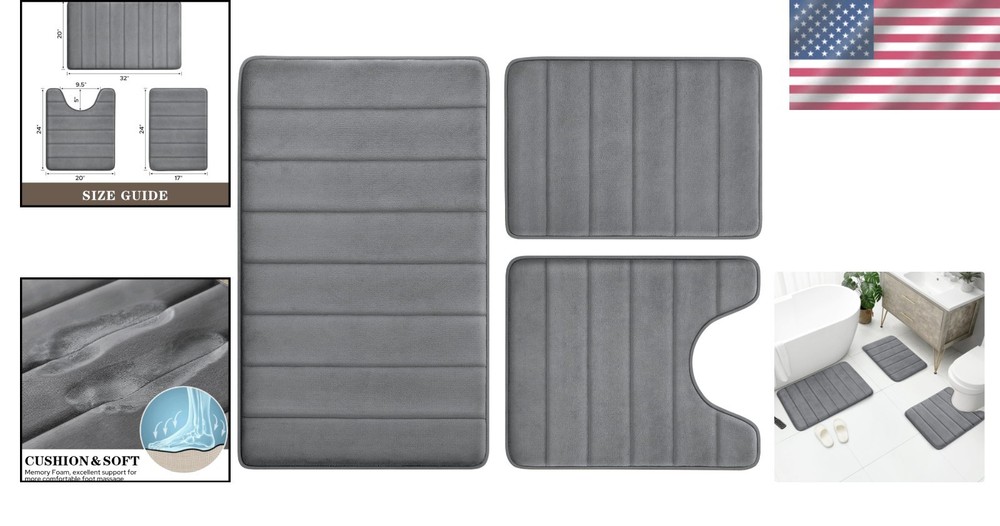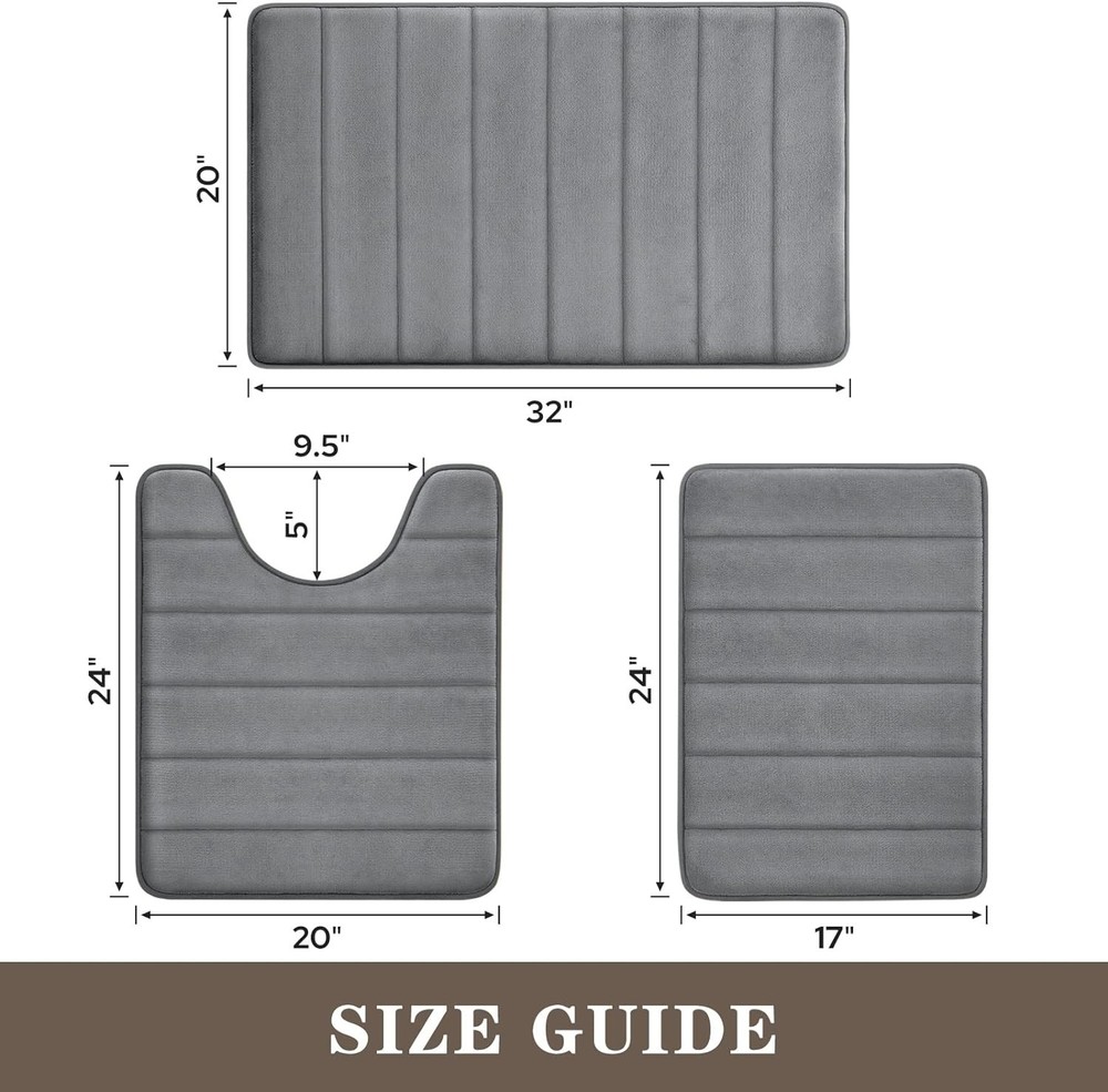 Dark Grey Memory Foam 3-Piece Bath Rug Set – Soft, Non-Slip & Machine Washable ‹ › ‹ › ‹ › ‹ › ‹ › ‹ › ‹ › ‹ › ‹ › ‹ › ‹ › Dark Grey Memory Foam 3-Piece Bath Rug Set -Soft, Non-Slip & Machine Washable Complete Bathroom Rug Set: Includes two bath mats (32" x 20" and 24" x 17") and a U-shaped toilet contour rug (24" x 20") perfect for any bathroom setup. Quality and Comfort: Crafted from natural microfiber fabric for a soft touch, reminiscent of walking on fine sea sand. Features a high-quality 40D standard memory foam pad that provides soothing support for tired muscles, far exceeding traditional bath rugs in comfort. Non-Slip and Water Absorption: Designed with an anti-slip backing, ensuring safety for both family and pets. Enhanced grip keeps the mats securely in place while the textured design protects all edges. Intensive small holes in the memory foam efficiently absorb water and promote airflow, allowing for quick drying and maximum comfort. Machine Washable: Easily maintainable - simply wash with cold water and a mild detergent, and hang to dry. Colors remain vibrant and intact even after multiple washes, ensuring lasting elegance in your bathroom. Variety of Colors and Textures: Available in a range of beautiful colors and textures to seamlessly complement your home décor. Select your favorite shade to enhance your living space with elegance and style. Why Choose Our Memory Foam Bath Rug Set? Transform your bathroom into a luxurious haven with the Dark Grey Memory Foam 3-Piece Bath Rug Set. Experience unparalleled comfort and quality with each step you take on these rugs. Their sophisticated design blends seamlessly with any décor while providing unmatched support and safety. Upgrade your bathroom experience today - indulge in the tranquility of our memory foam bath rug set and elevate your space in style! Shipping Free & Fast Shipping - We offer free shipping to most of the USA with a normal delivery time of 3-7 days. However, due to the current situation, additional delivery time (up to 3 weeks) may be required for some items. Alternative Carriers - We may use alternative carriers (e.g. USPS, FedEx, UPS, etc.) to ensure your package arrives safely and on time. Due to the use of multiple carriers, we are unable to provide a tracking number automatically. Handling Time - Orders are processed and shipped within 1-2 business days of receiving cleared payment. Shipping Restrictions - Shipping to Alaska, Hawaii, Puerto Rico, Guam, and other US territories may incur shipping charges or delivery restrictions. Please contact us before ordering, or your order can be refunded/cancelled. State Restrictions - There may be restrictions based on your state of purchase. For example, certain items may not be shipped to California due to state regulations. Contact for Tracking Updates - If you require tracking updates or have any concerns about the delivery of your order, please feel free to contact us, and we will be happy to assist you. Return 30-Day Hassle-Free Returns - We want you to be completely satisfied with your purchase. If you are not, you can return the item within 30 days of receiving it for a full refund or exchange. Easy Return Process - To start a return, simply contact us and we will provide you with a prepaid return shipping label and detailed instructions. Restocking Fee - There are no restocking fees for returns. However, the buyer is responsible for return shipping costs if the return is not due to a seller's error. Refund Processing Time - Refunds will be processed within 5 business days of receiving the returned item in its condition. Payment We accept all major credit cards, PayPal, and Apple Pay for your convenience. Your payment information is secure and encrypted to ensure a safe and seamless transaction. Please complete your payment within 3 days of purchase to avoid any delays in shipping. Feedback Your feedback is extremely important to us. We strive to provide the best products and customer service possible. If you are satisfied with your purchase, please take a moment to leave us a positive review. If you have any concerns or issues with your order, please contact us before leaving negative feedback. We are committed to resolving any problems and ensuring your satisfaction. Contact Us If you have any questions or concerns, please feel free to out to our customer support team. You can contact us through the eBay messaging system. We are available Monday to Friday, 9:00 am to 5:00 pm EST, and we will do our best to respond to your inquiry within 24 hours. Buy it now and enjoy a pleasant shopping experience! Item Height: Bathroom Rug Set Unit Quantity: 0.12 kg Material: Memory Foam,Microfiber,Polyvinyl Chloride Set Includes: Bath Mat,Contour Rug Room: Bathroom Features: Non-Slip,Water Absorbent Department: Adults Care Instructions: Machine Wash Type: Bath Rug Color: Dark Grey Number of Items in Set: 3 Shape: Rectangular Pattern: Striped