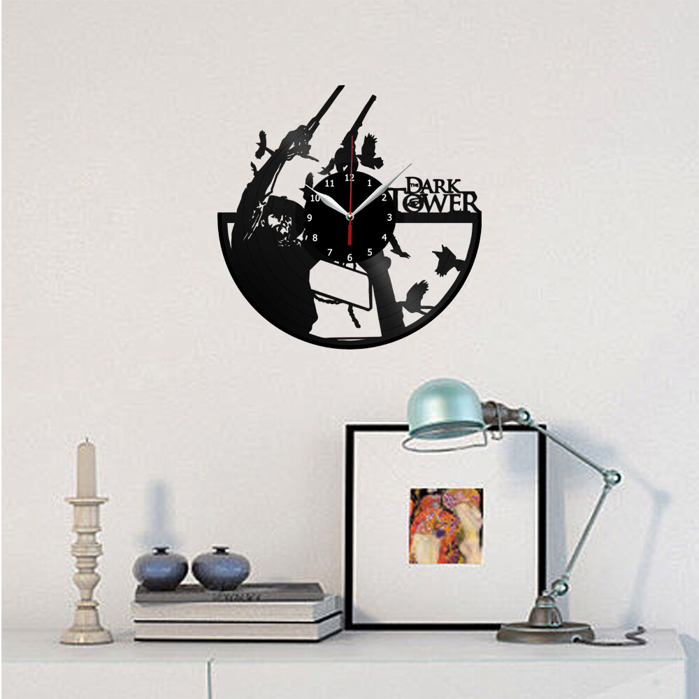 Dark Tower Vinyl Clock Record Wall Clock Condition: New Size: 12" (30cm) Material: vinyl record, built-in hanger, new movement quartz clock mechanism. Our clock mechanisms work quiet. * Requires 1 AA battery (not included) We pack our wall clocks in a separate protected box. This can be a unique gift for a birthday, anniversary, wedding, Mother's Day, Father's day and so forth. It is a beautiful decoration for hall, living room, office, playroom, kitchen, bedroom, children's room, nursery. Custom order Would you like to create something absolutely original? Nothing could be easier! Feel free to order your own unique design! Shipping We will need around 2-3 working days to make the vinyl clock and send it to you. All buyers will be provided with tracking numbers for their purchases. Shipping only by AIR Mail services. Contact Us Feel free to contact with us if you have any questions. We seek to answer for all messages as soon as it possible but, please note for the time difference about 7-10 hours, that's why some answers may be received only next day.