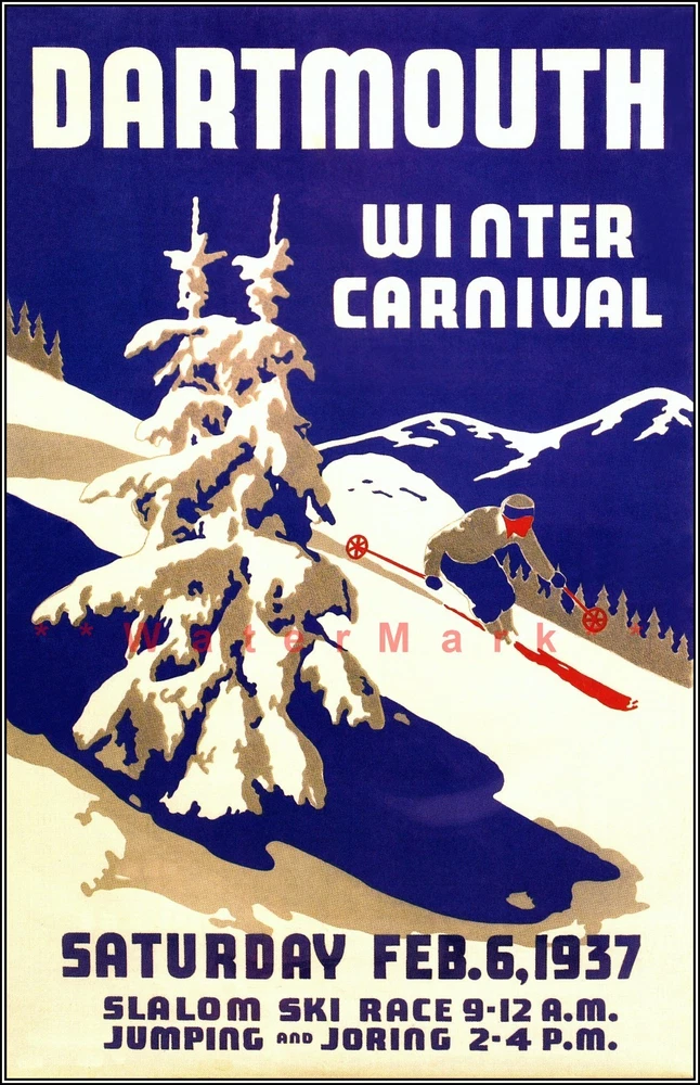 Dartmouth Winter Carnival 1937 Winter Sports New Hampshire Vintage Poster Print Retro Style Restored Art ***We offer Free US Postage or Reduced Postage for Canada & Worldwide. **No charges for additional prints worldwide. ***These are not framed or stretched or mounted NOTE:**Delivery dates shown are only "Suggested" Order Early To Avoid Post Delay Dramas **Read Please: The print looks best with a nice mat (passe - partout or passepartout ) and frame. These prints are the exact proportion as the original and will not be stretched to fit the paper or canvas...this would cause a distorted print The image will be the exact aspect ratio as per the original poster, so there might be more white on the top and bottom, or side to side. Options available..use the drop-down menu * Watermark will not be on your image. *Cloth Canvas an artist canvas used also in museums and art galleries *Photo Gloss Paper is a high-quality Professional Photo paper *Matte Photo Paper is a g oo d solution if you do not want a Gloss, then this paper is good for that option. But be aware that colors will not be a bright as with the Luster for example, o ther papers are coated that helps colors. The Matte will mute the colors a bit. *Luster Photo Paper this photo paper is neither glossy or mat. Glossy paper has a smooth texture, luster paper is slightly textured. This option is a g reat choice for something in between Metallic, Photo Gloss and Matte *Metallic Pearlescent Photo Paper is a very high-quality paper with a Pearlescent sheen, a glossy finish, and unique metallic appearance, these prints have extra visual interest and depth. This paper uses a combination of film laminate layers that produce striking, dimensional, lasting images on an ultra-bright background. The effect is sometimes described as "chrome on paper." This is NOT a metal plaque, it is a photo paper This poster print will be shipped in a sturdy container. We will ship usually within 24 business hours of payment, except for weekends or US Holidays If there is a question, please do contact me All is done to send you the best quality poster image. Don't forget to check out the Sales. There is a great Buy 3 Get 1 Free Offer!! Shipped with no extra postage..Worldwide! There are a variety of reasons why the images on your monitors don't match each other. The simplest is that each monitor is different; even monitors with the same model won't have colors that match up perfectly We are located, print and ship only from the USA The art is not AI generated, these are restored prints from originals